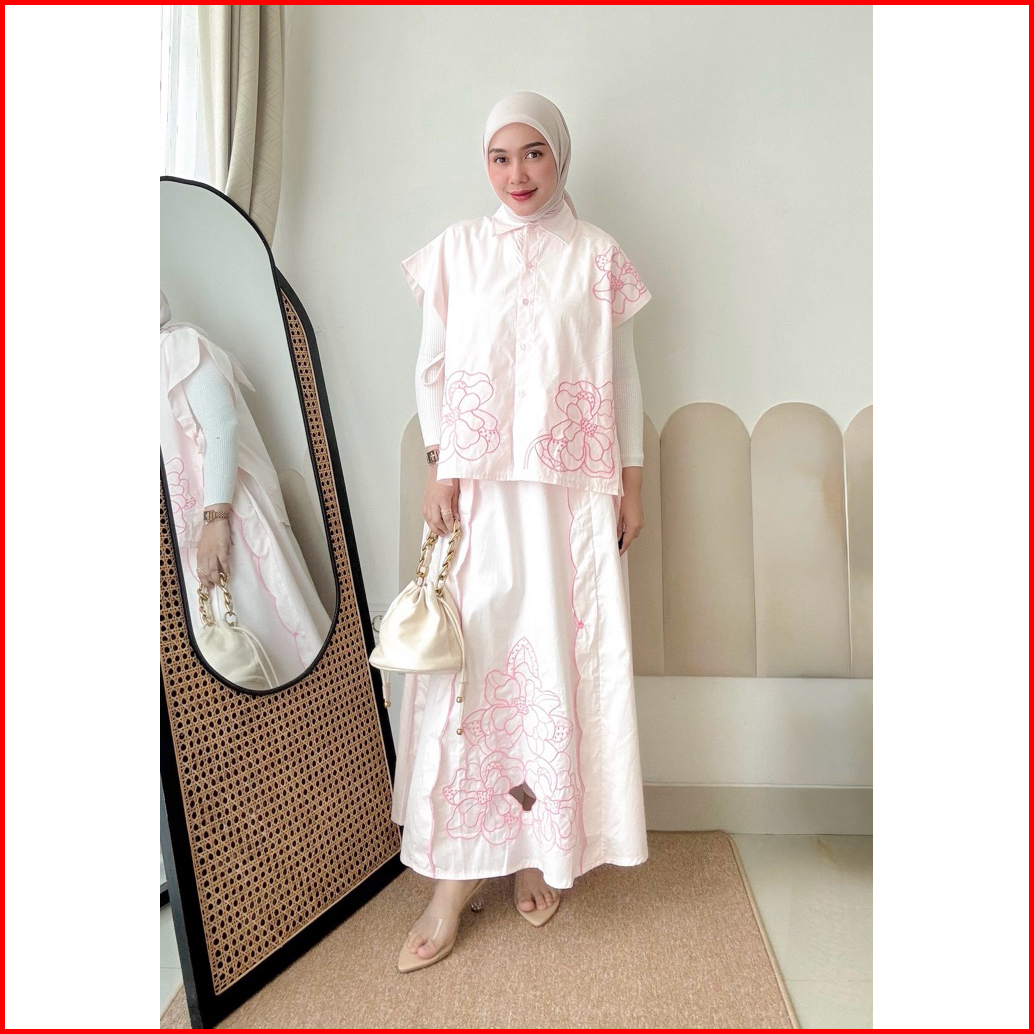 One Set Katun Wanita Bordir Bunga