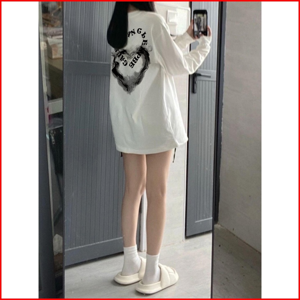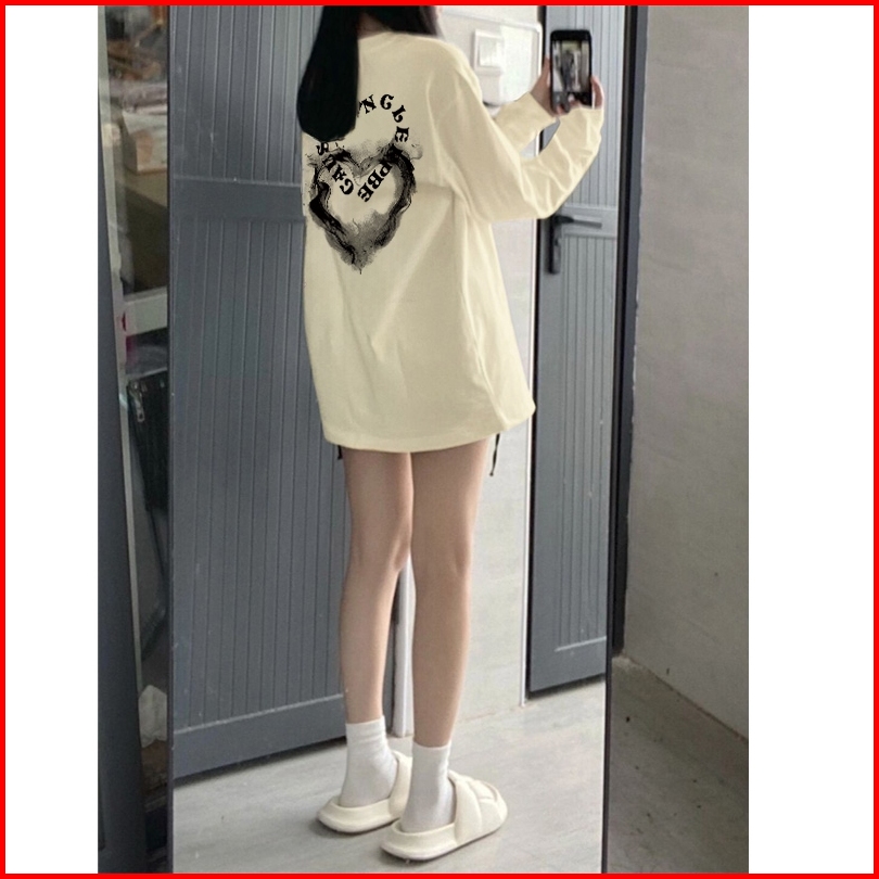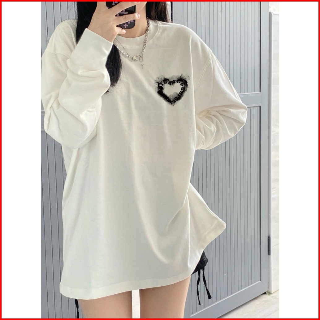 Kaos Oversize Lengan Panjang Wanita Heart Shaped Letters Graffiti Baju Kaos Lengan Panjang Wanita Terbaru Kekinian Baju