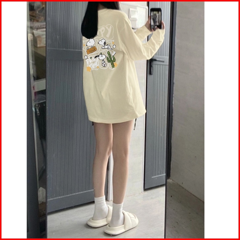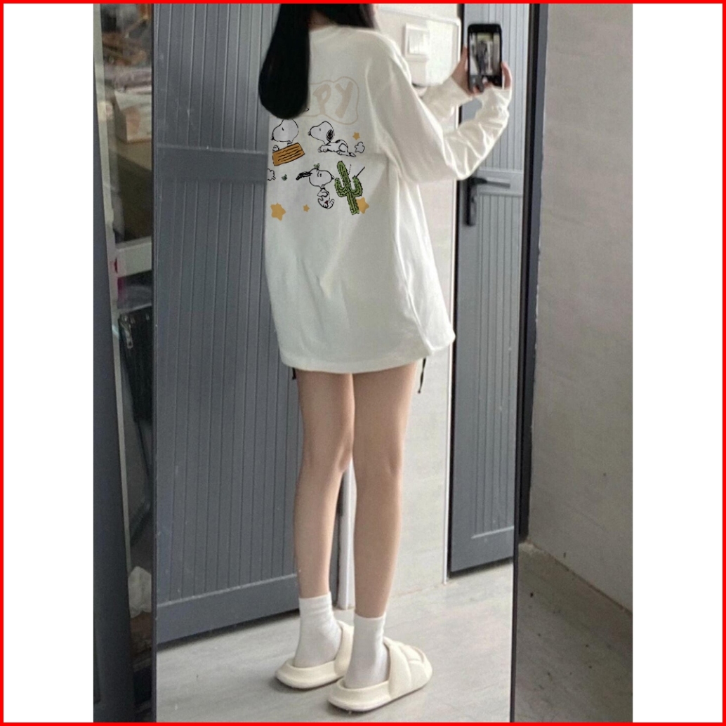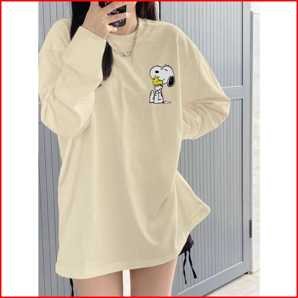 Kaos Oversize Lengan Panjang Wanita Snoopy Baju Kaos Lengan Panjang Wanita Terbaru Kekinian Baju Kaos Wanita Putih P0014