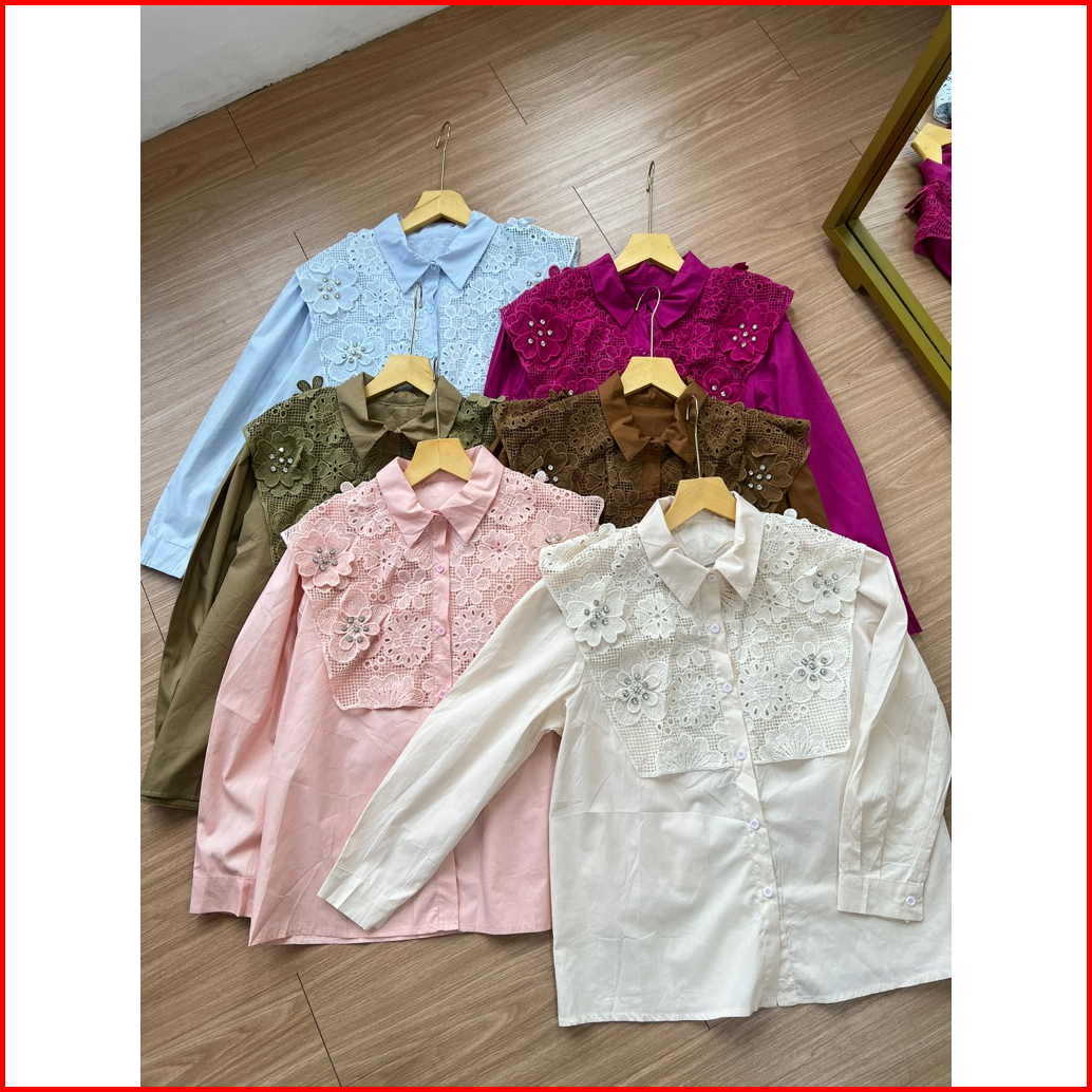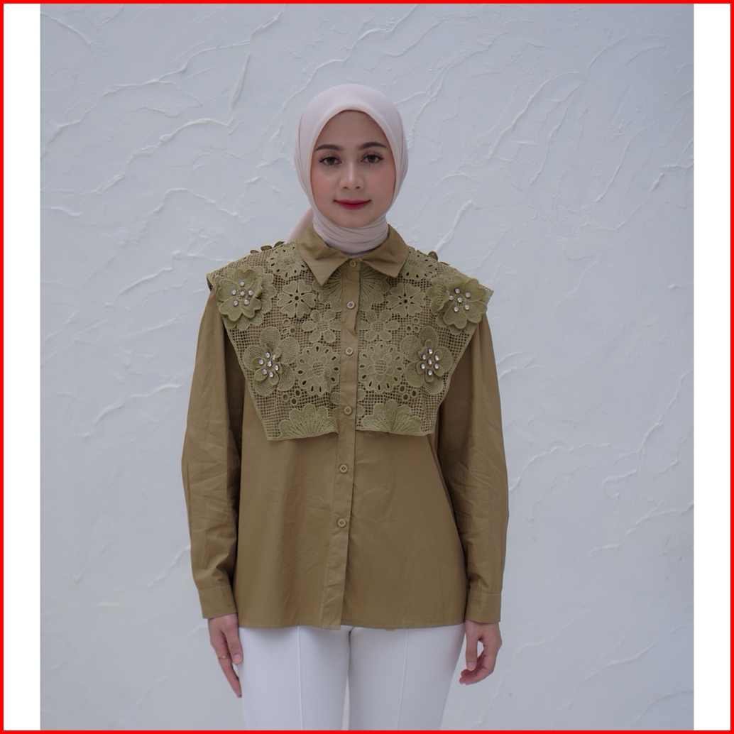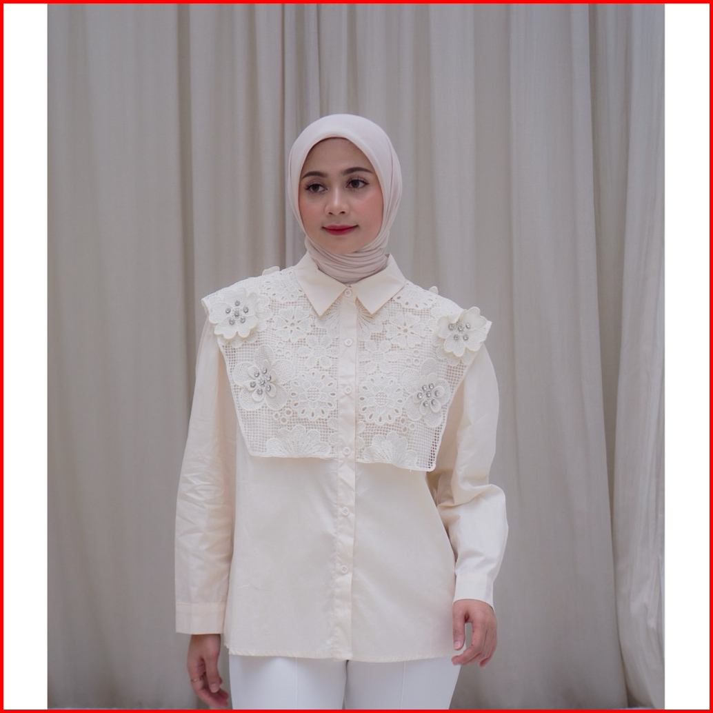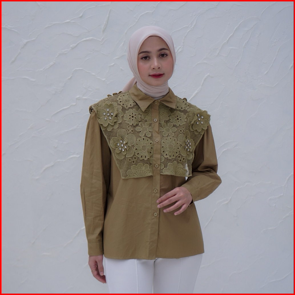 Blouse Katun Wanita Aksen Bordir Bunga Premium