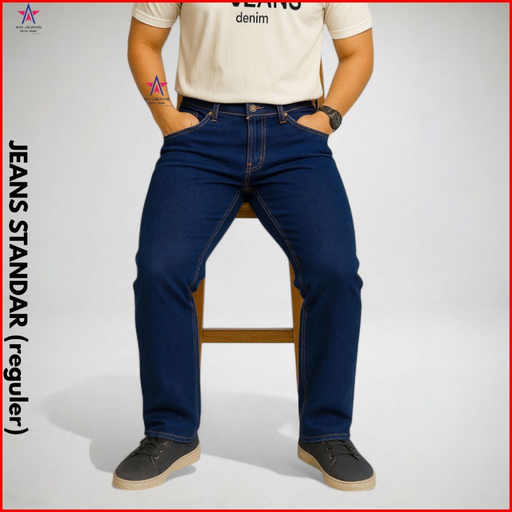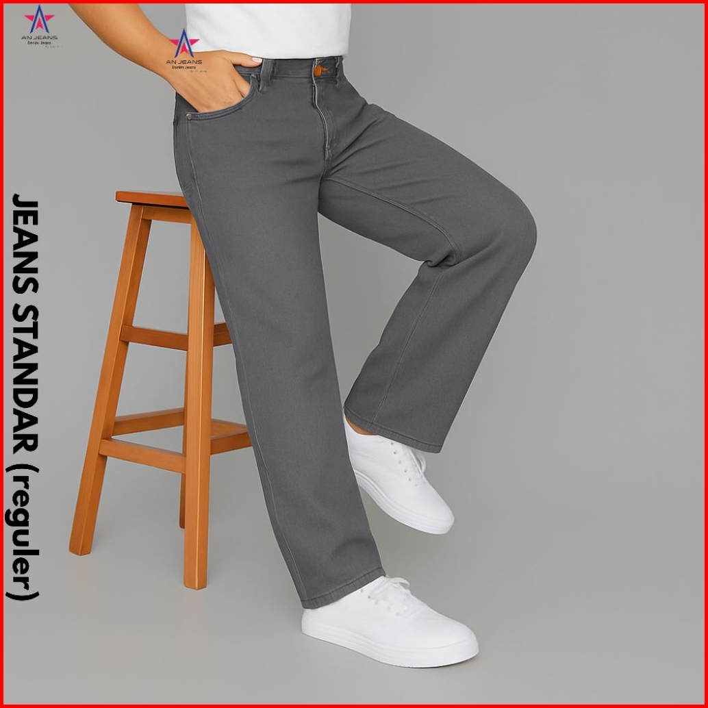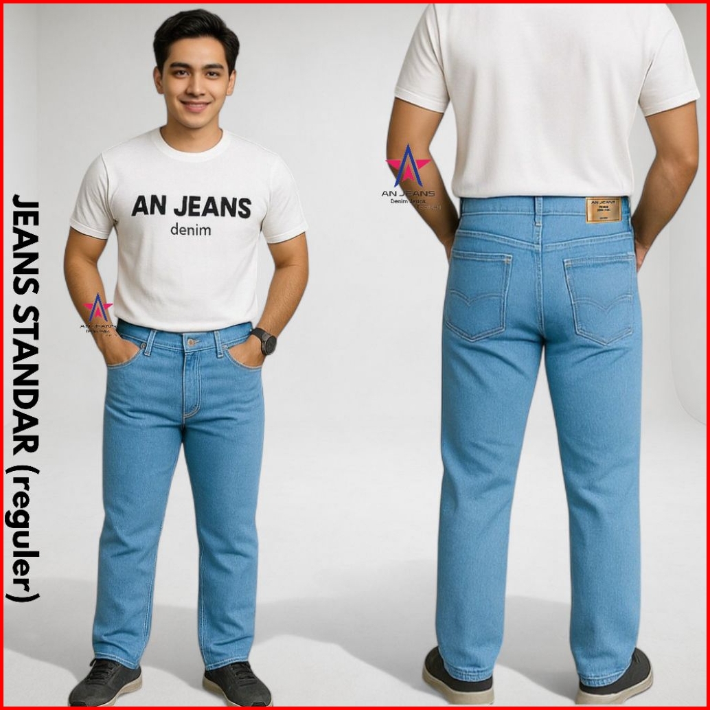 An Jeans - Celana Jeans Reguler Pants Retro Basic Denim Celana Standar