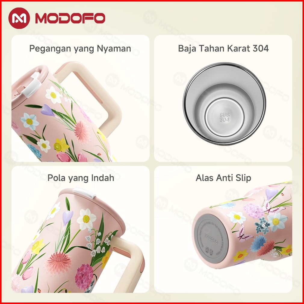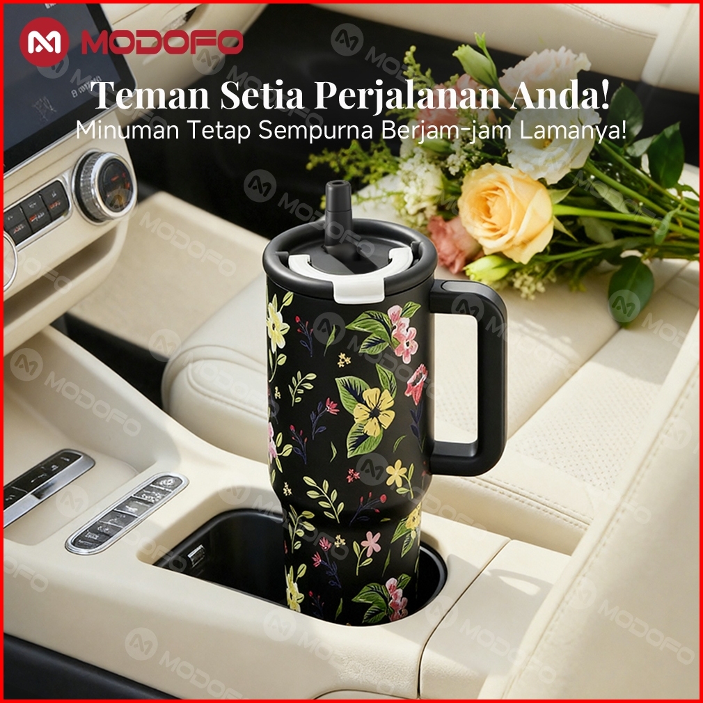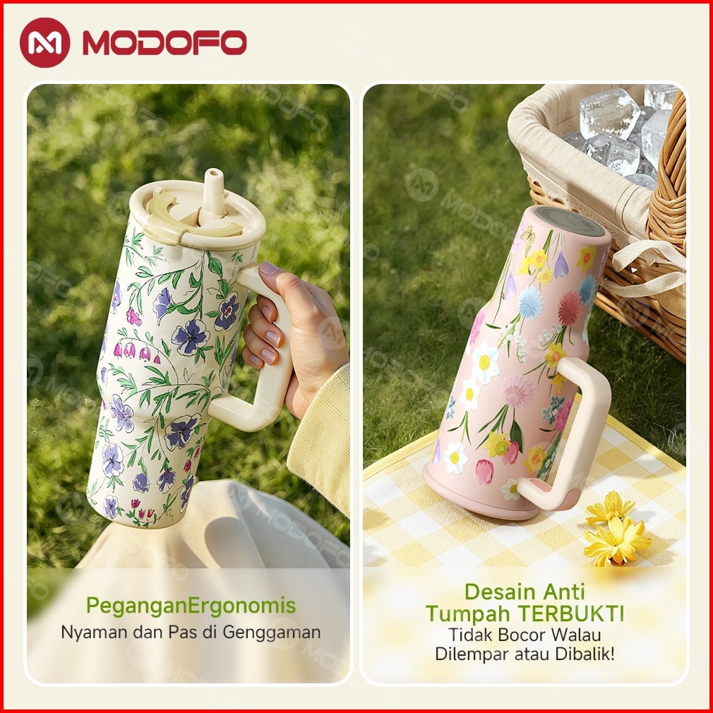 Modofo 1200ml Tumbler Aesthetic Motif Bunga Watercolor Anti Bocor Isolasi Dingin 24 Jam Stainless