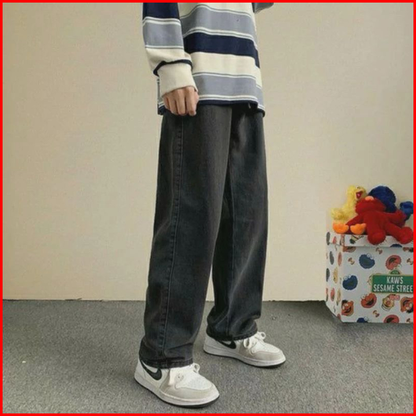 Celana Jeans Pria Panjang Hitam Reguler Fit Standar Besic 100 Denim Jeans Cowok Korea Loose Gombrong Tahun 2024