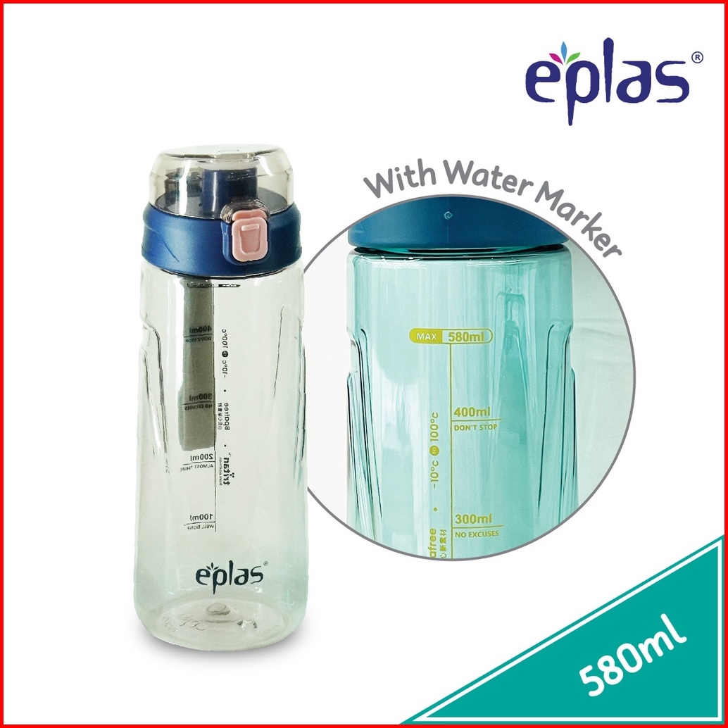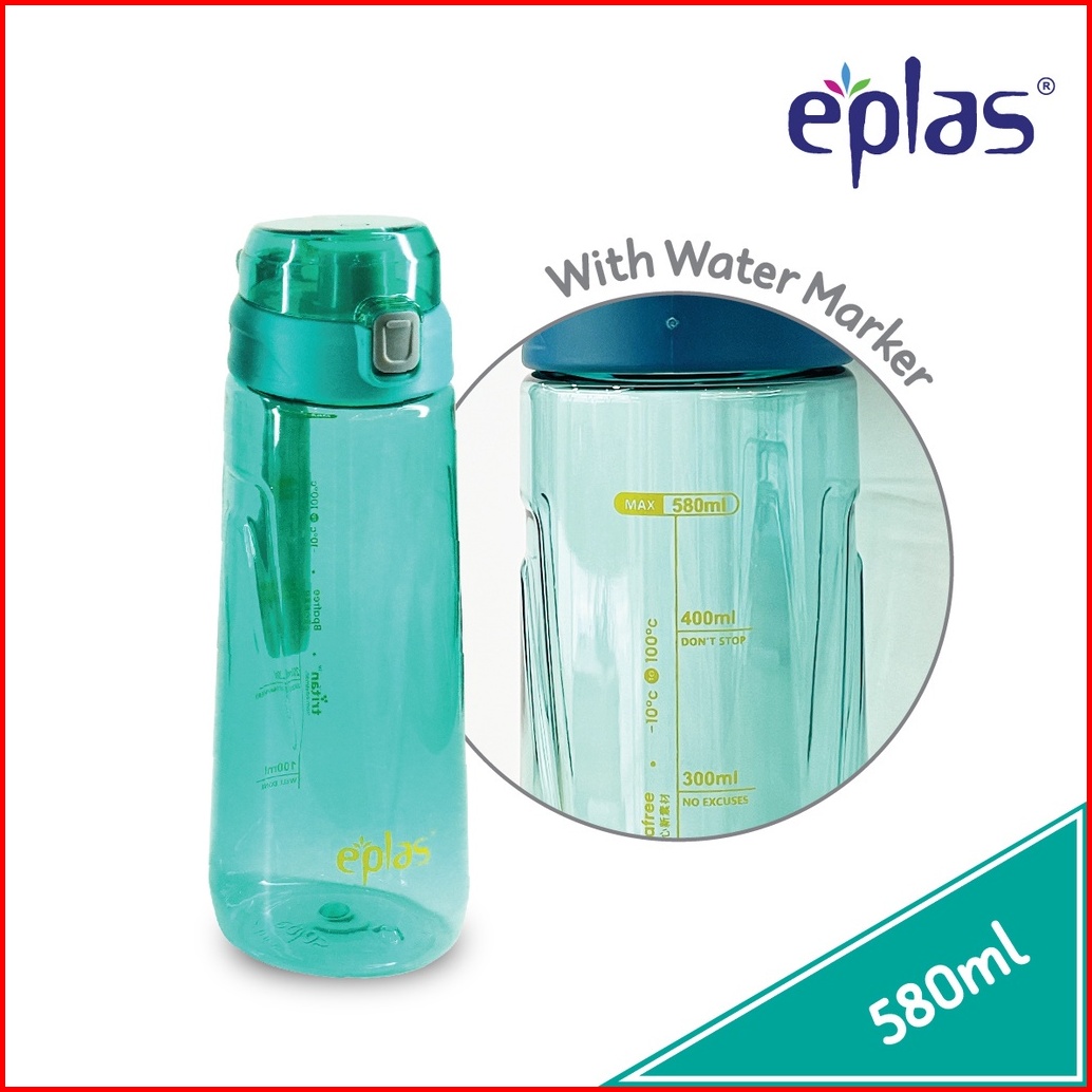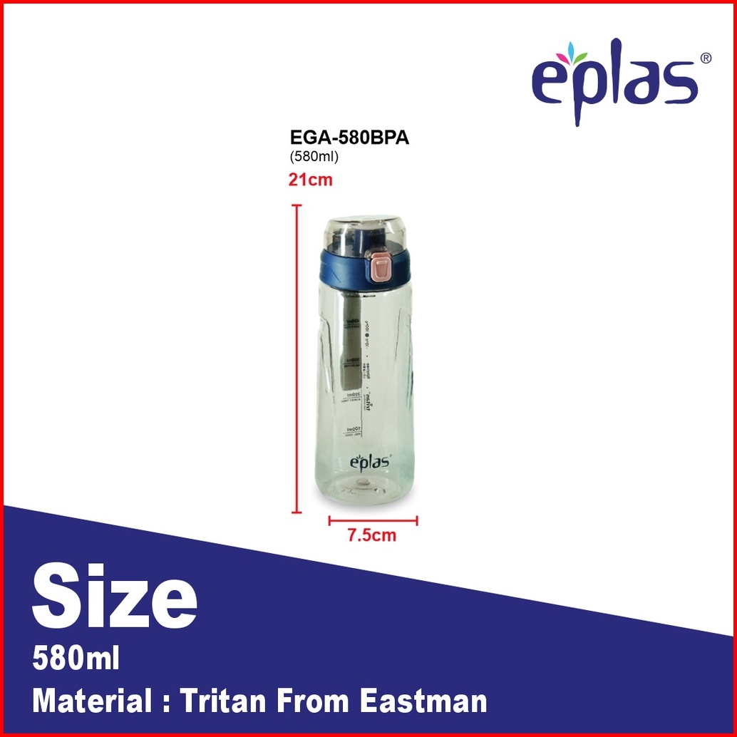 Eplas Botol Minum Tritan Dengan Tali Silikon Tombol Tekan 580ml Ega-580