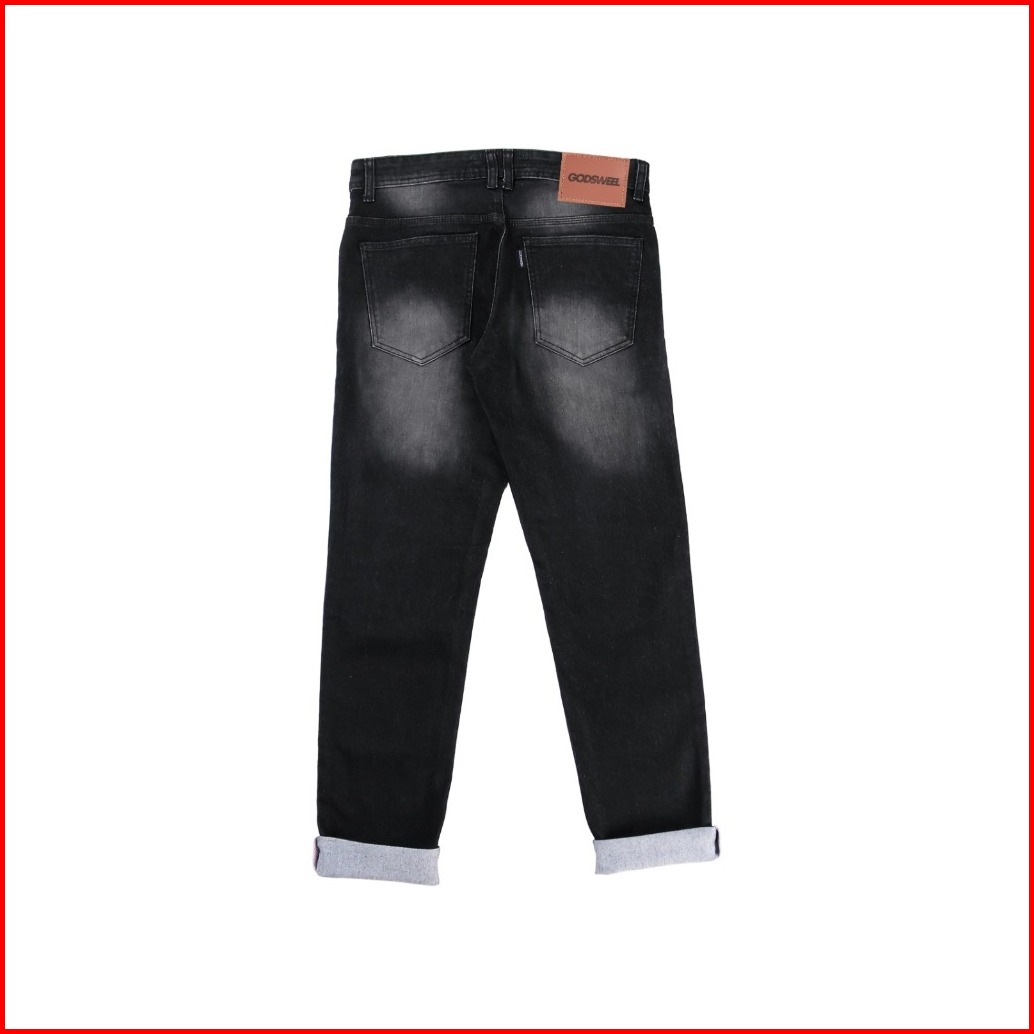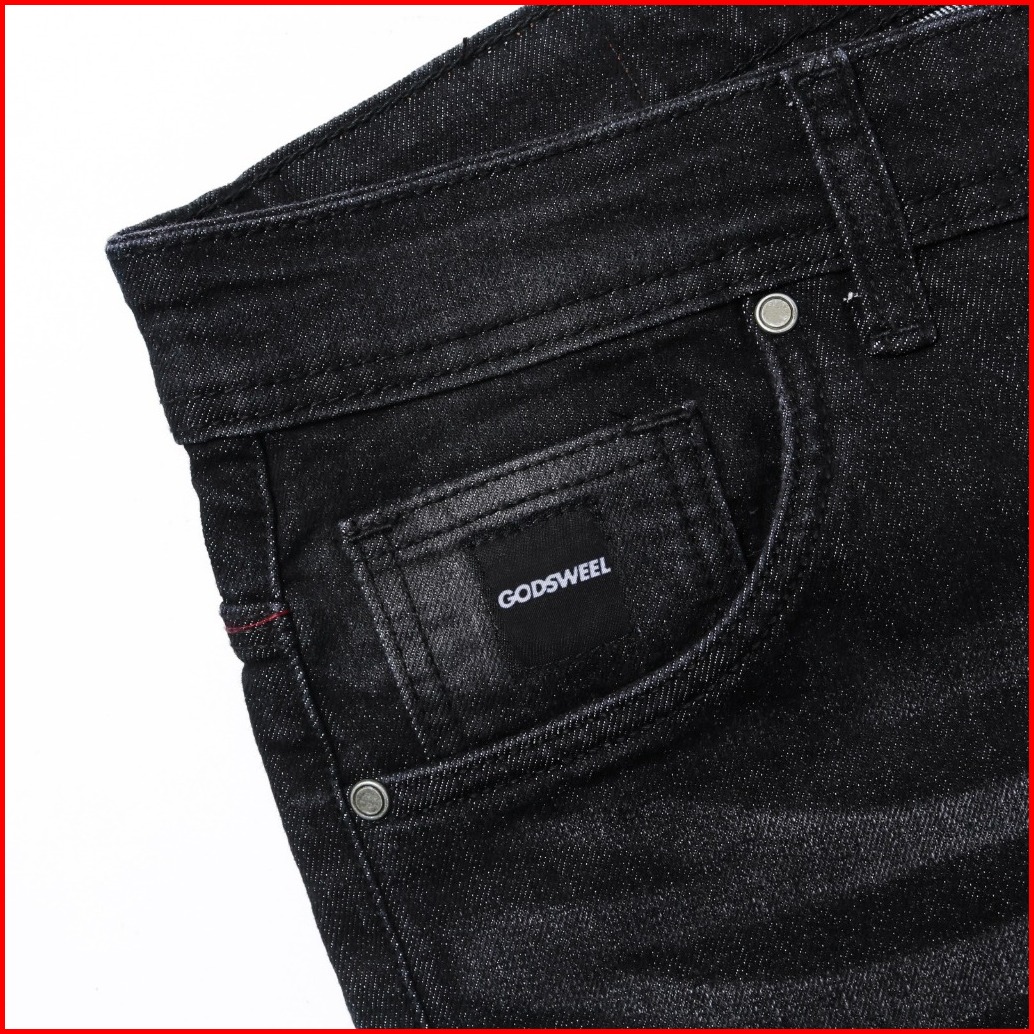Godsweel Celana Jeans Pria Panjang Aksen Selvedge Slimfit Blackjazz Stretch