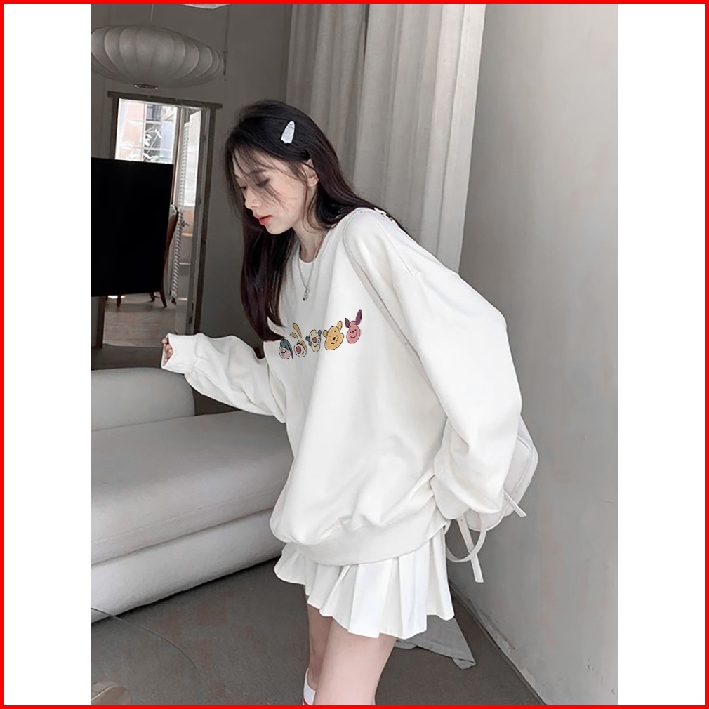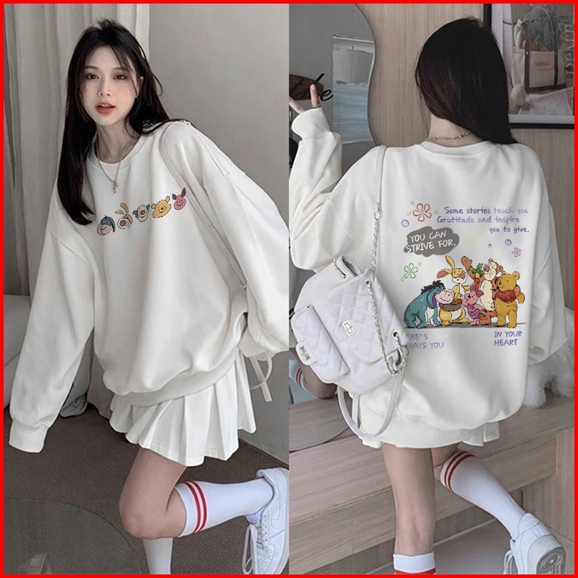 Sweater Oversize Wanita Lengan Panjang Versi Korea Cetakan Winnie The Pooh And His Friends Baju Sweater Wanita Korean St