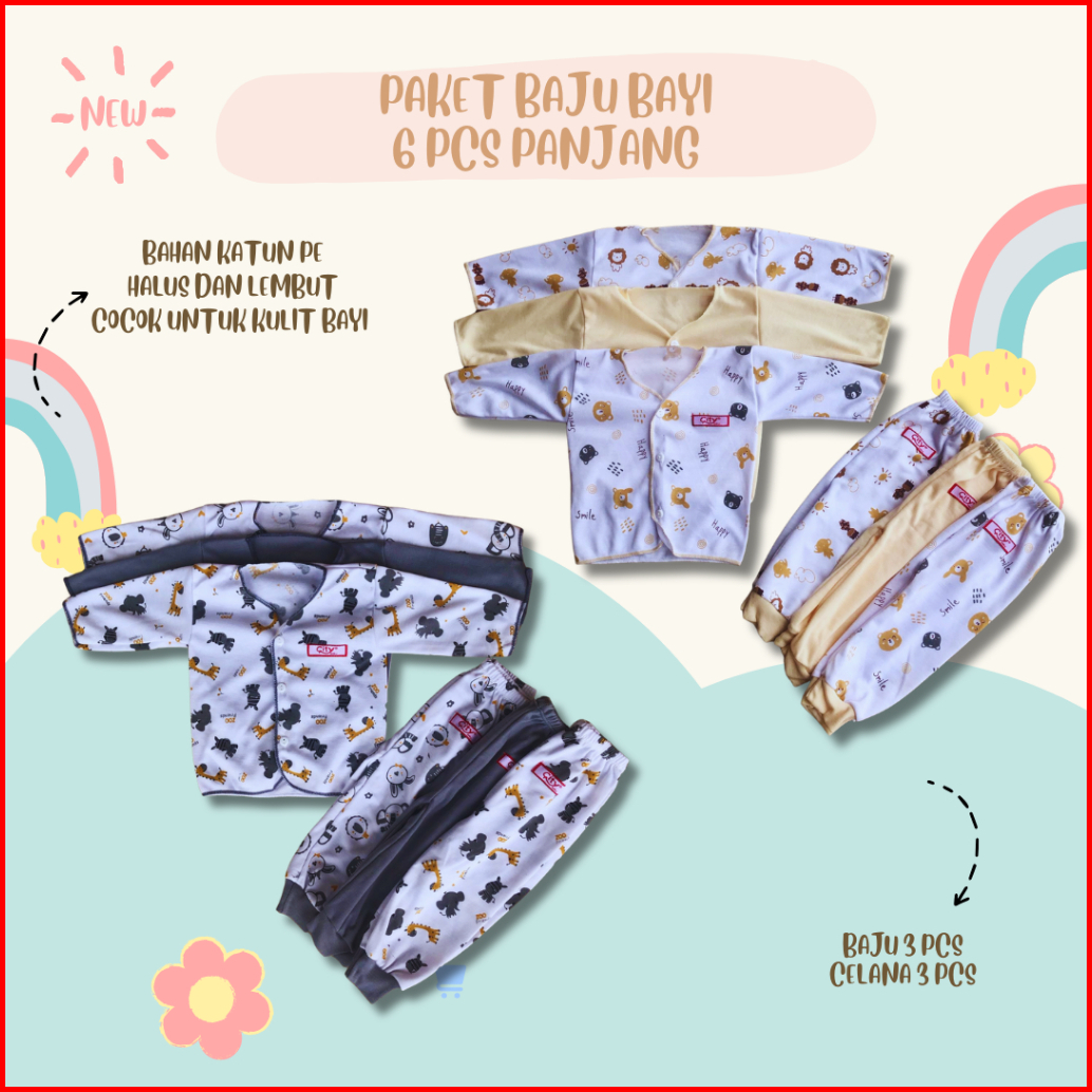 6 Pcs Baju Bayi Lengan Panjang Paket Baju Bayi 6 Pcs Panjang Bahan Lembut