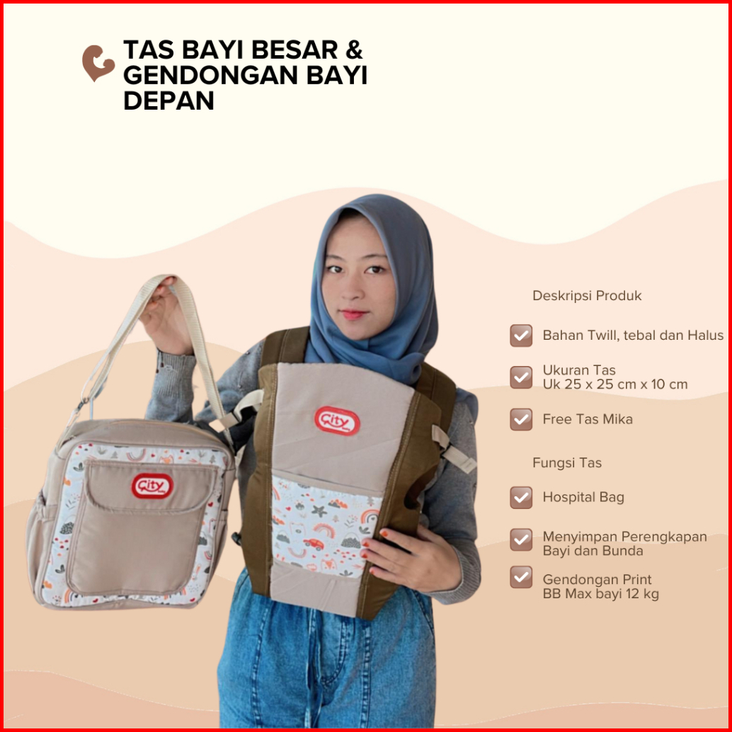 Paket Tas Bayi Kecil Print Dan Gendongan Bayi Depan Print