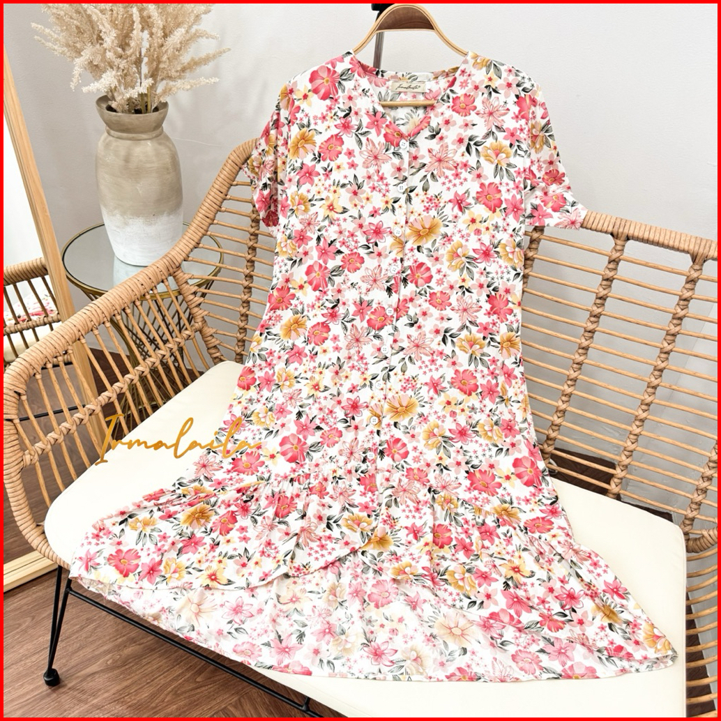Irmalaila - Prily Dress Rayon Motif Kekinian Nyaman Lembut Kancing Busui Fiendly