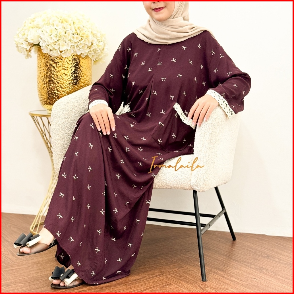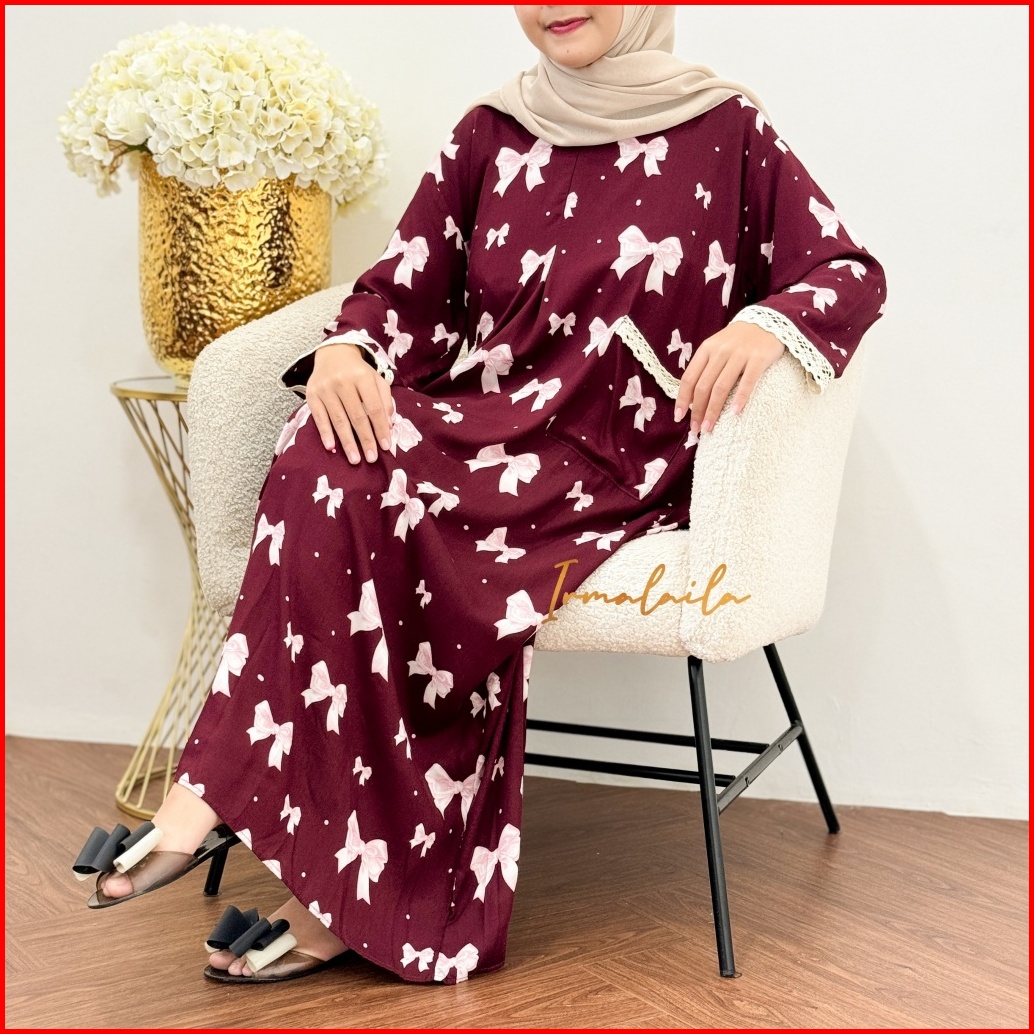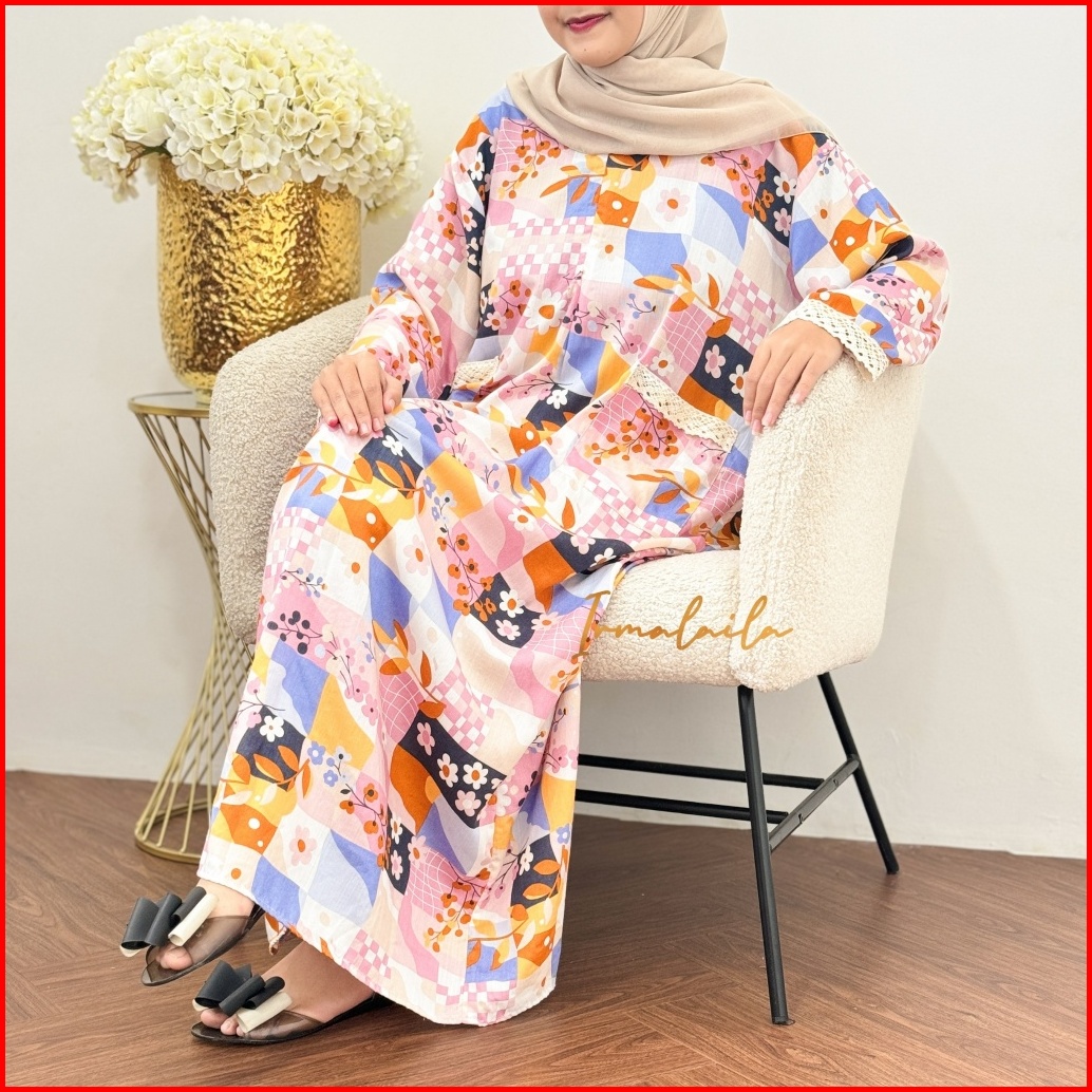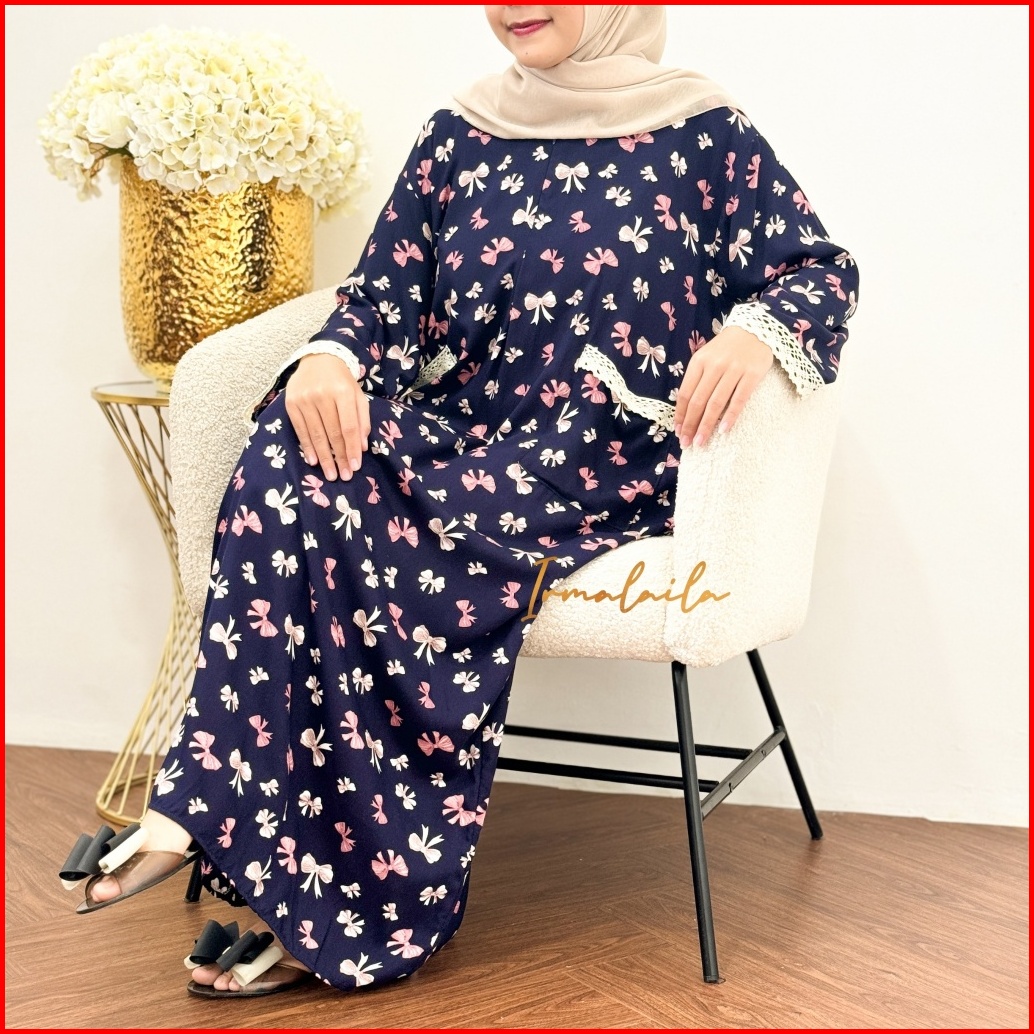 Irmalaila - Daster Kekinian Renda Tangan Panjang 2 Saku Mix Renda Cantik Bahan Rayon Lembut Adem Nyaman Bumil Dan Busui