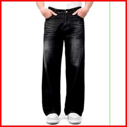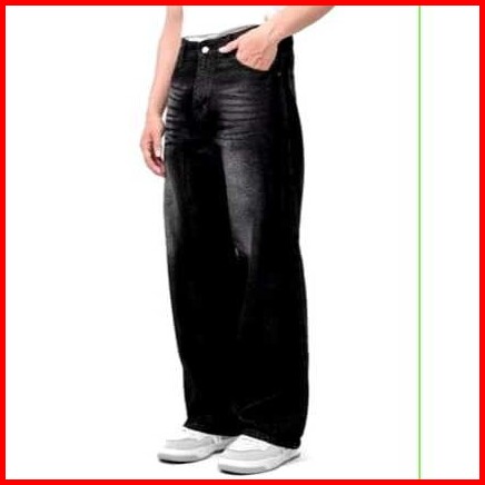 Nzl - Celana Jeans Wide Leg Wisker Lebar Gombrong Skena Black Wisker Pria Loose Fit Jumbo