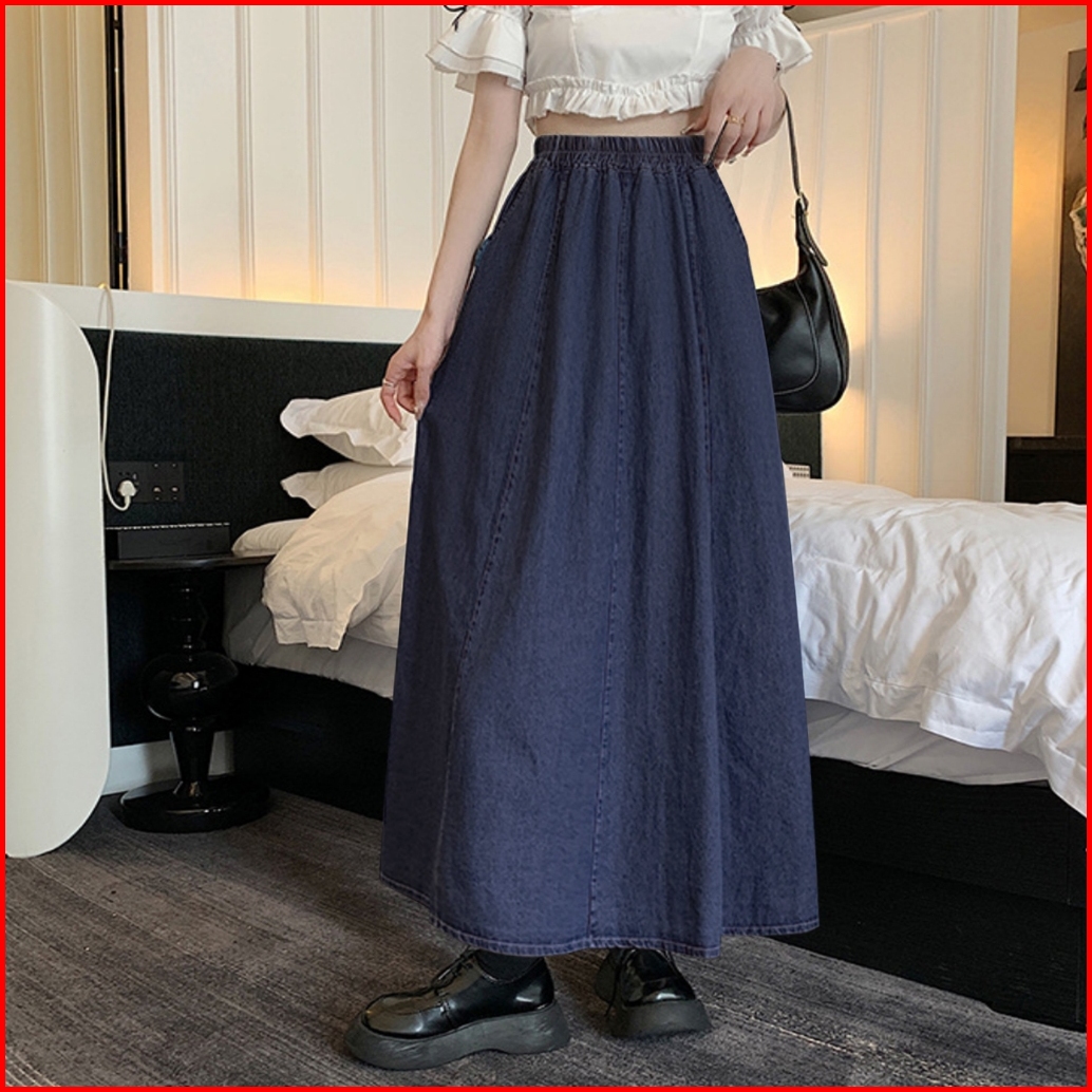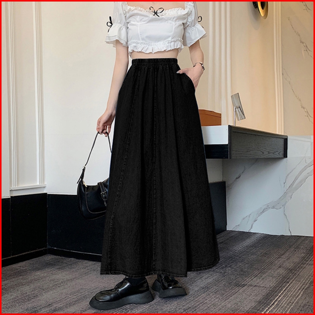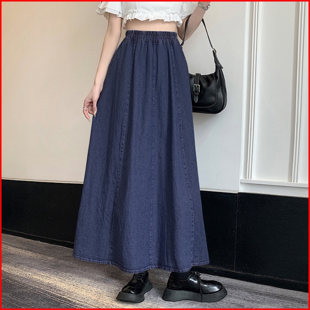 Women Jeans Skirt Fashion Casual Elastic Waist A-line Outfit Denim Skirt
