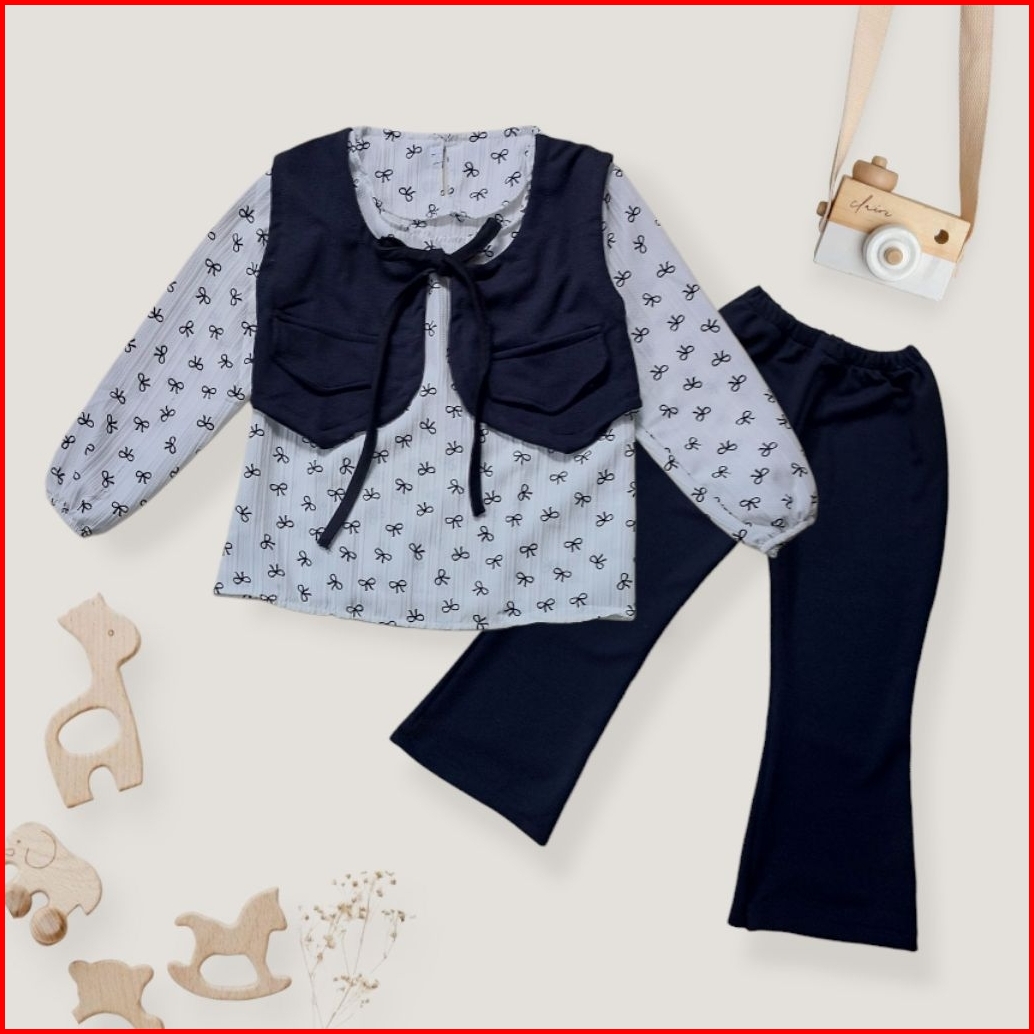 One Set Anak Perempuan Motif Pita Baju Korean Style Usia 2-10 Tahun