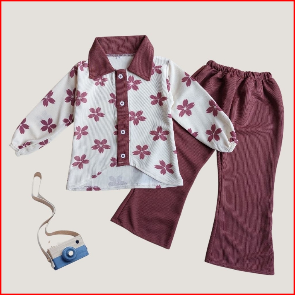 Setelan Baju Anak Perempuan Bahan Florencia Knit Celana Cutbray 2-10 Tahun