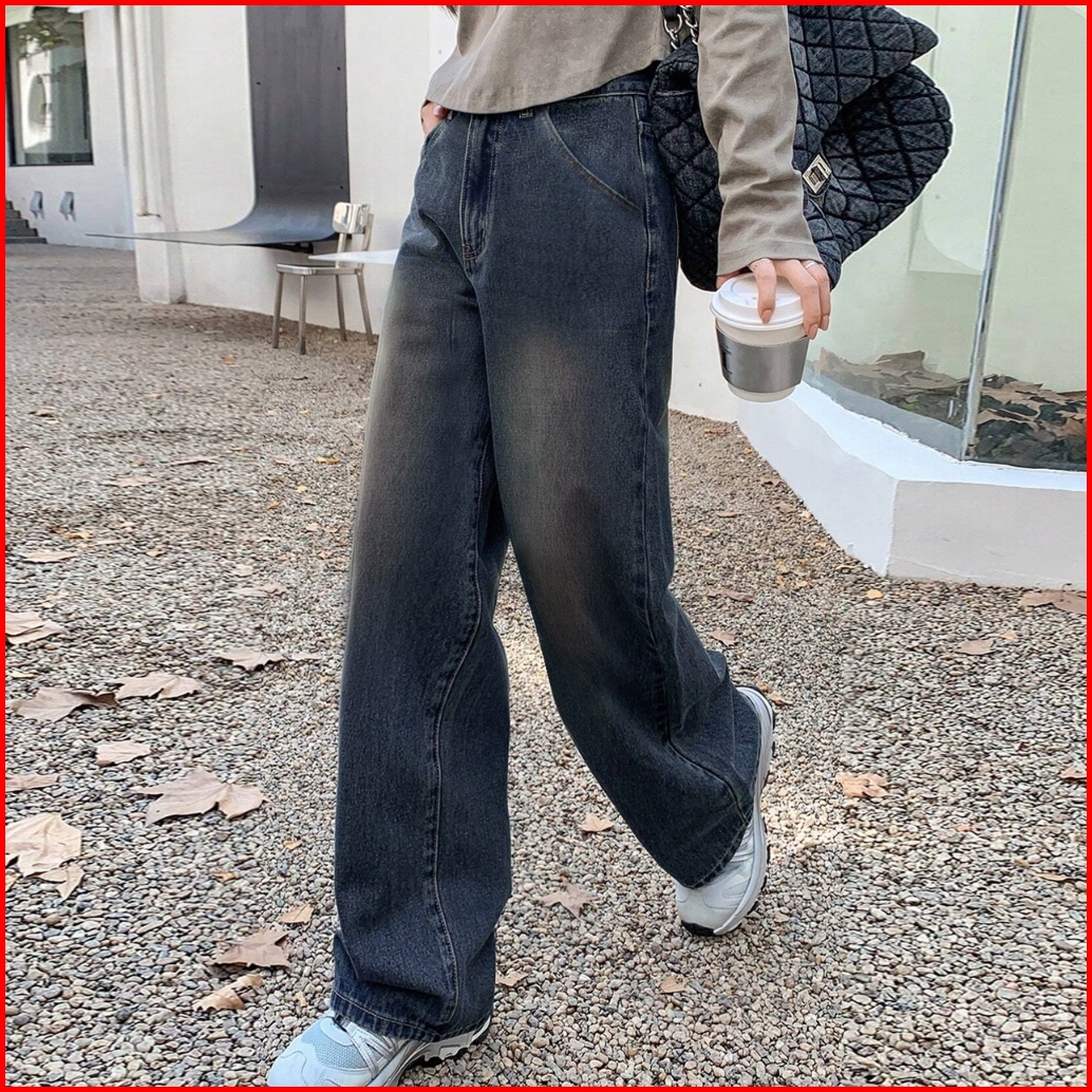 Jeans Baggy Style High Waist Fashion Loose Wanita Straight Cut Celana Jeans Terbaru
