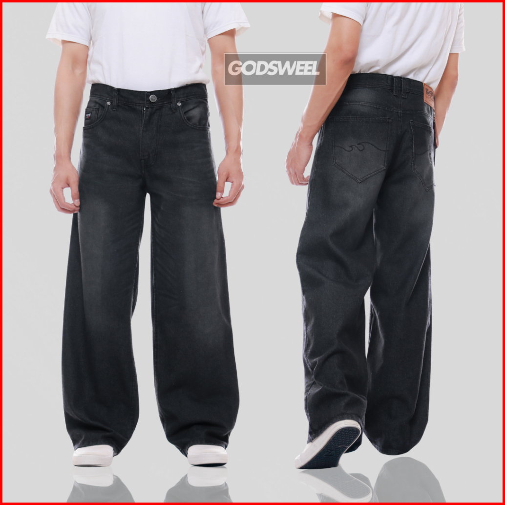Godsweel Celana Baggy Skena Jeans Pria Reguler Gombrong Standar Panjang Non Stretch Blackjazz Wisker