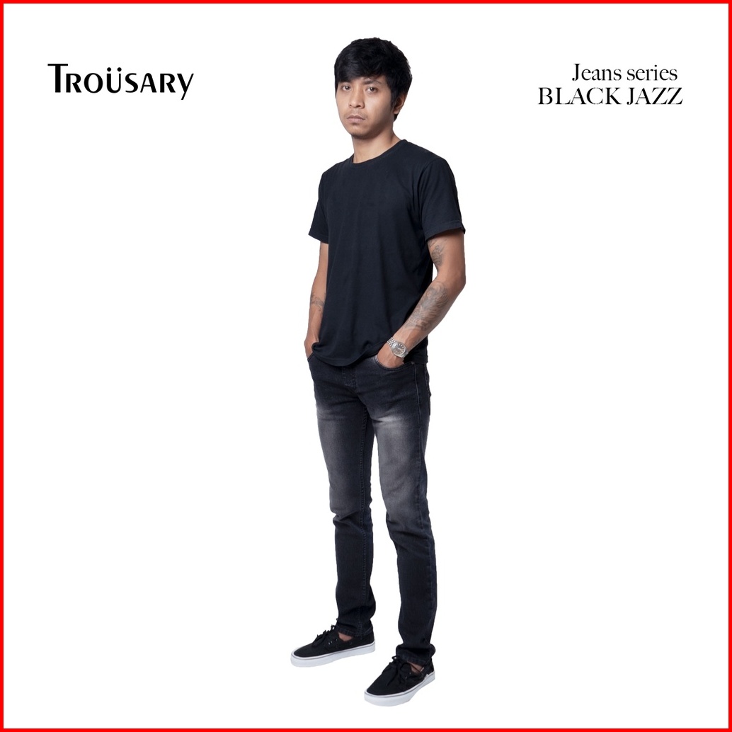 Trousary Celana Jeans Slimfit Strech Pria Warna Blackjazz