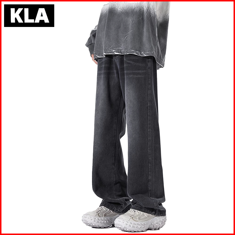 Kla Celana Jeans Pria Abu-abu Hitamwisker Celana Jeans Wide Leg Gombrong Wisker Pria Loose Fit Jumbo Big Keren Bahan Den