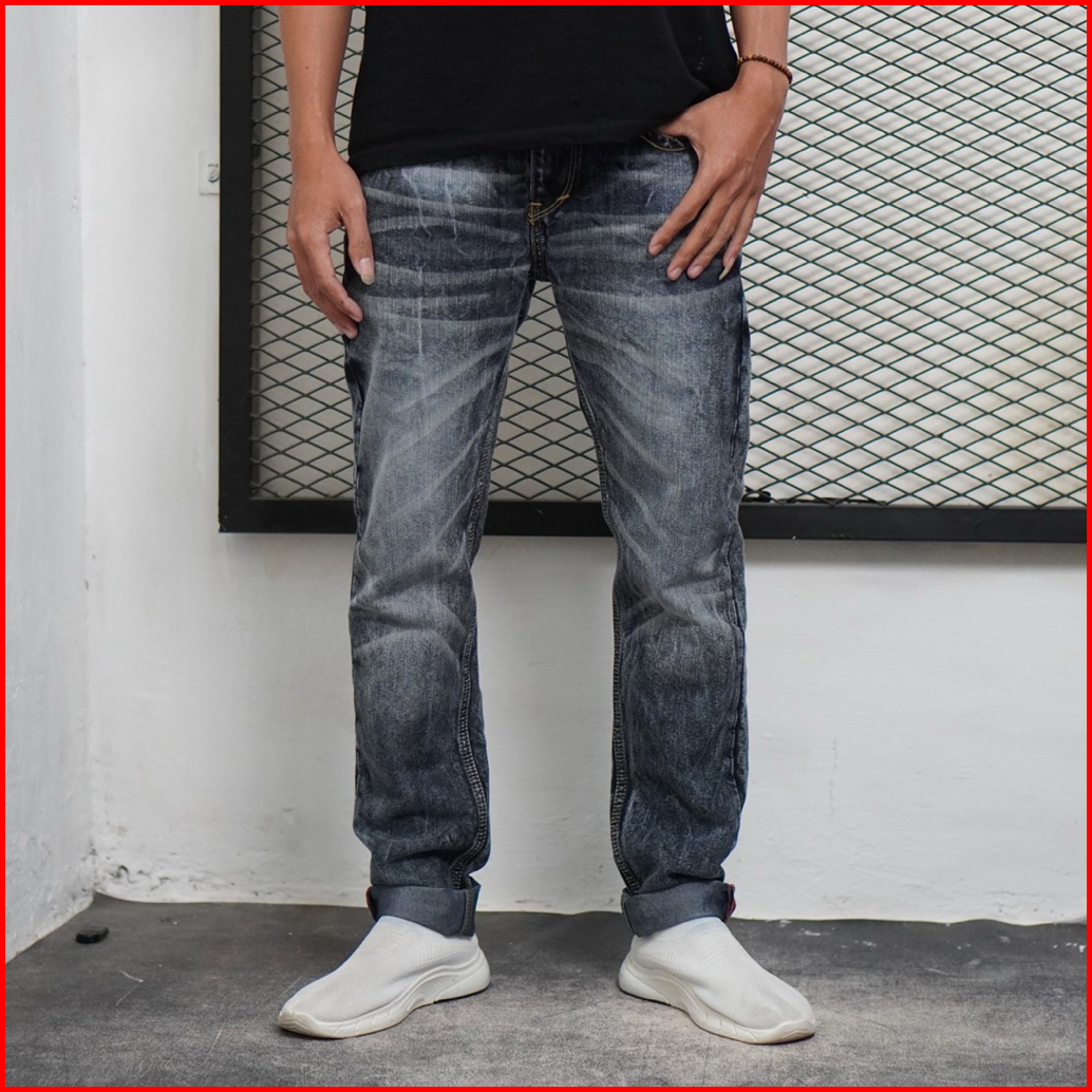 Neoma - Celana Jeans Pria Reguler Fit Bahan Tidak Melar Black Snow