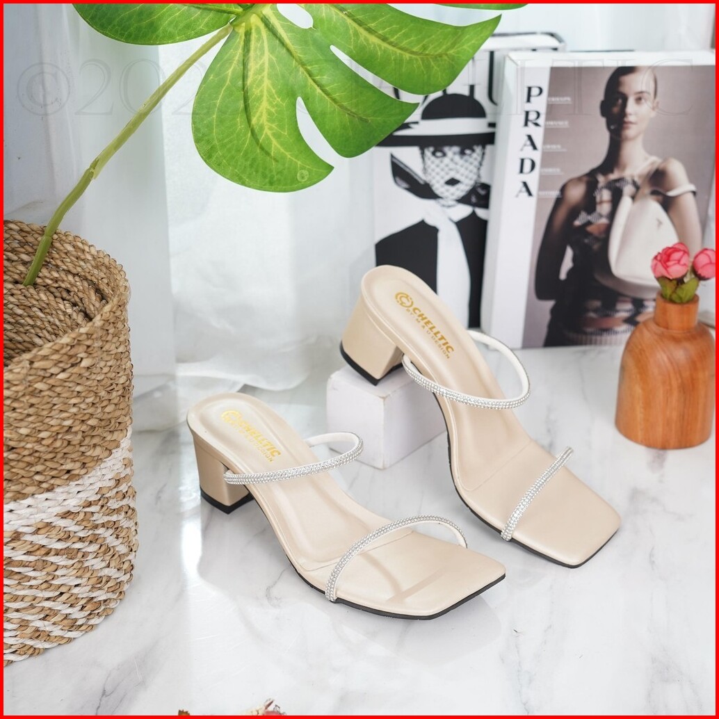 Galaxy - Sandal Heels Wanita Elegan 5cm Sepatu Pesta Wisuda Princess Hak Tahu Tali Mutiara Uk 37 38 39 40 Sendal Selop S