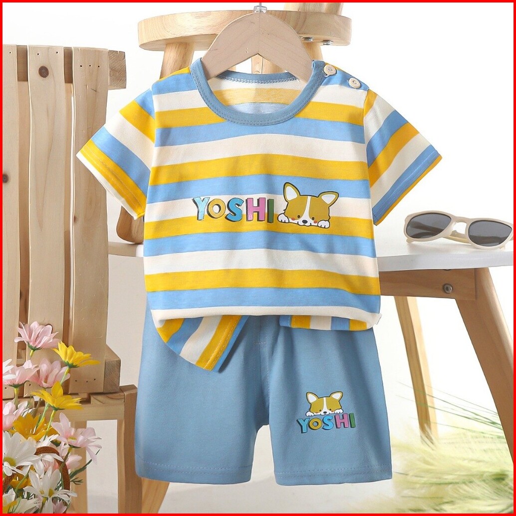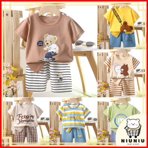 Niuniu Setelan Anak 0-6 Tahun Setelan Bayi Piyama Bayi Baju Pendek Dan Celana Pendek Katun
