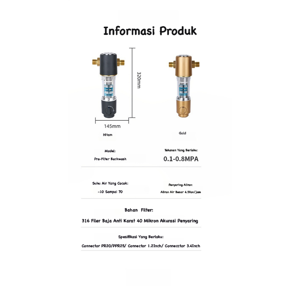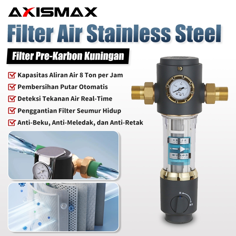 【】Filter Rumah, Tanpa Ganti Filter Seumur Hidup Sambungan Universal Pipa Tembaga, Pemurni Air Aliran Besar.