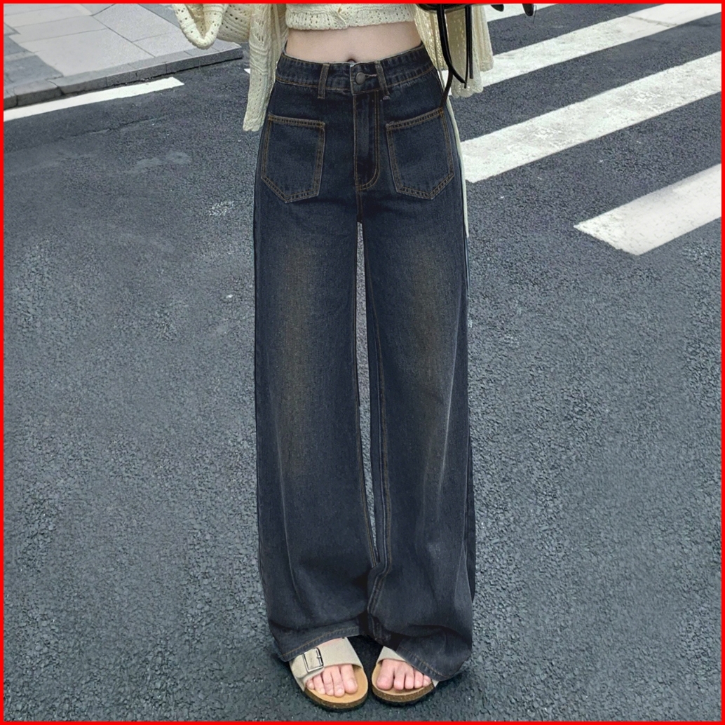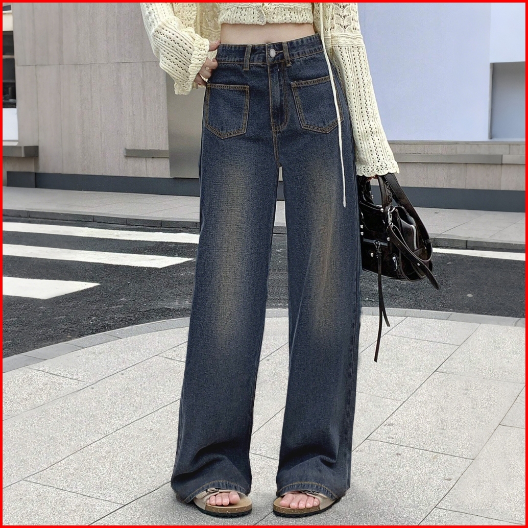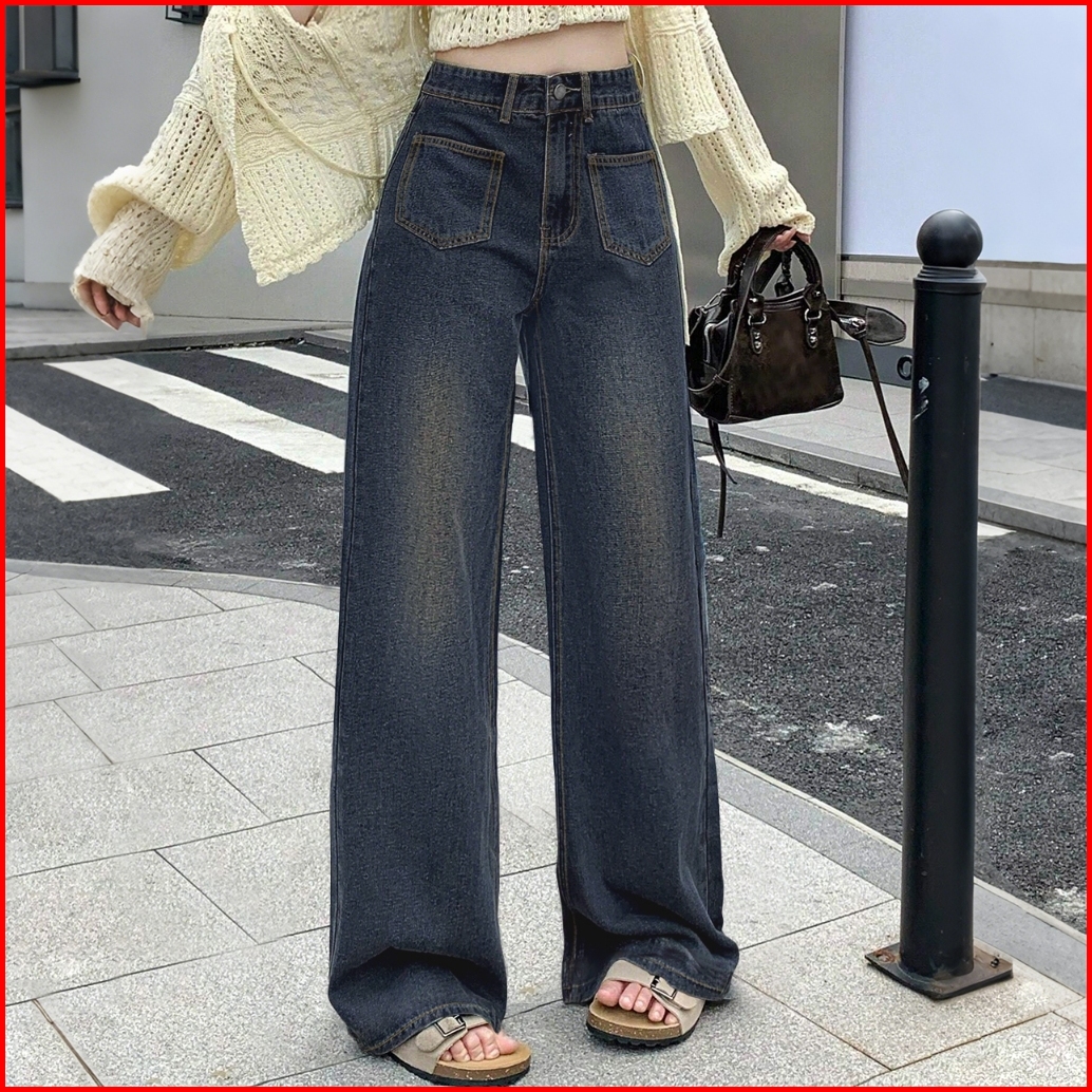 Jeans Baggy Korean Style High Waitst Denim Wide Leg Baffel Jeans For Wanita