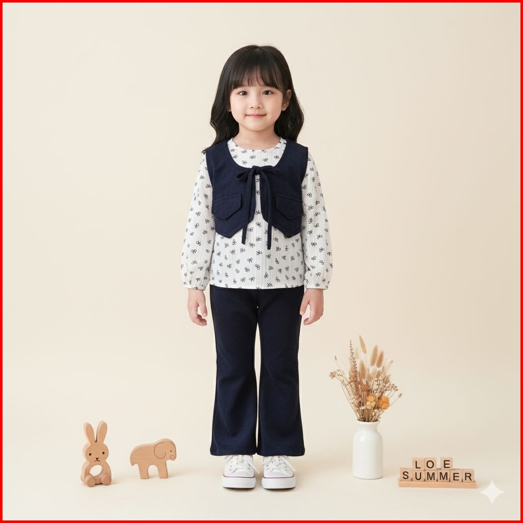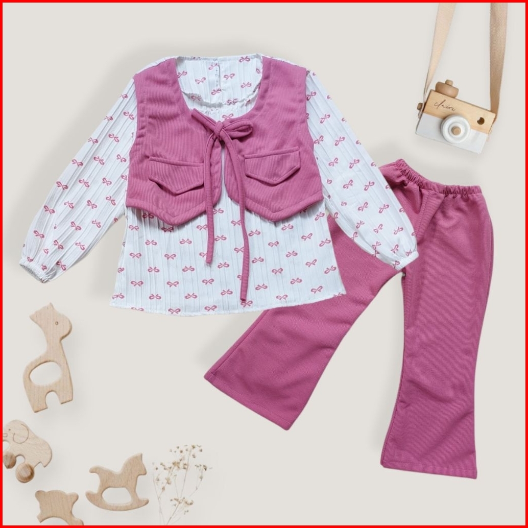 Setelan Baju Anak Perempuan Model Atasan Rompi Tangan Panjang Celana Cutbray Usia 2-10 Tahun Baju Korean Style