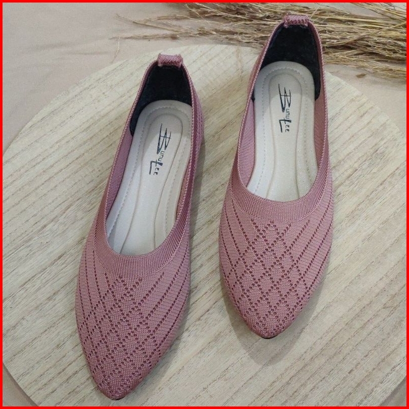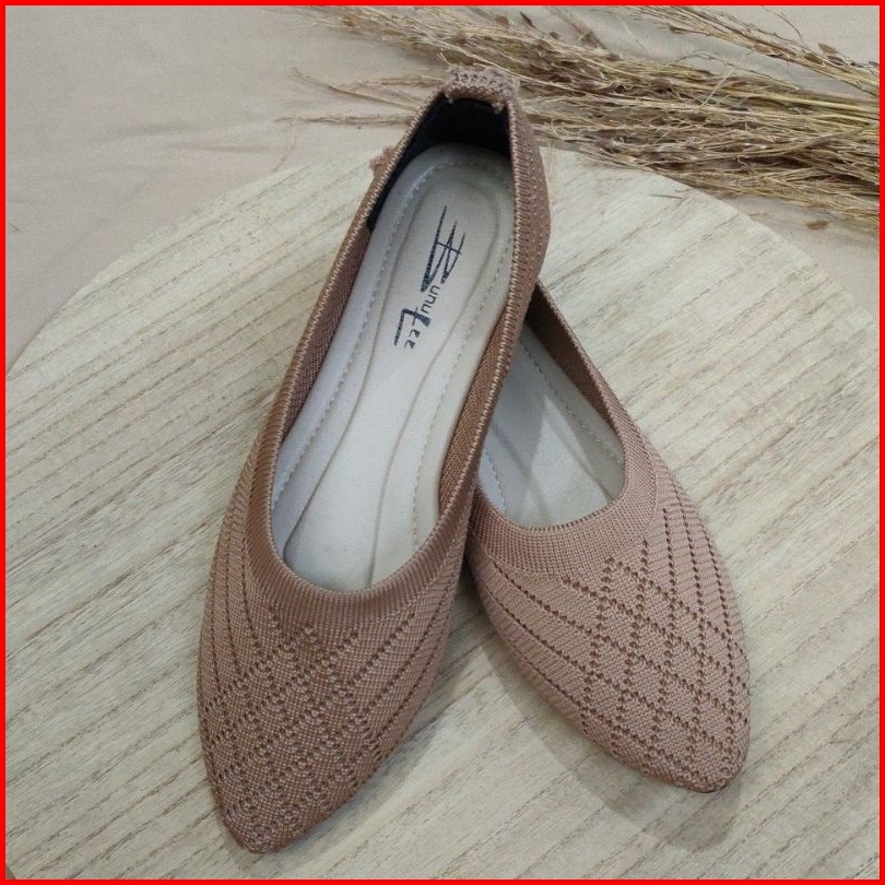 Promo Sepatu Flat Shoes Polos Wanita Terbaru Balet Rajut Polyester
