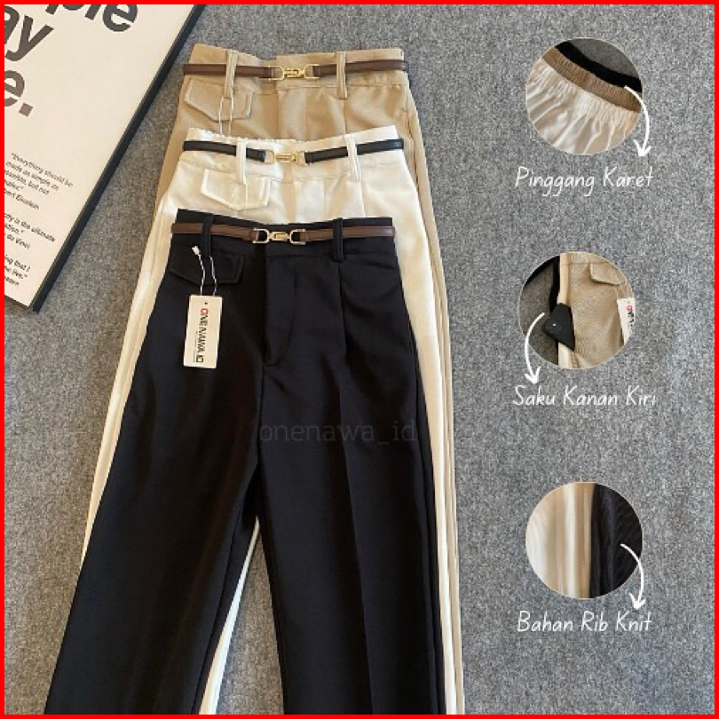 Oro Pants Celana Kulot Highwaist Loose Pants Trouser - Celana Kulot Wanita Anti Kusut Knit Premium