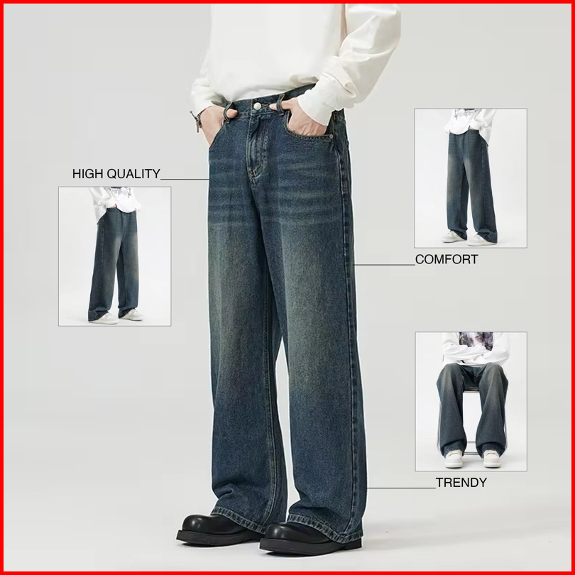 Captain Jesper - Celana Jeans Pria Panjang Baggy Jeans Loose Fit Wisker Reguler