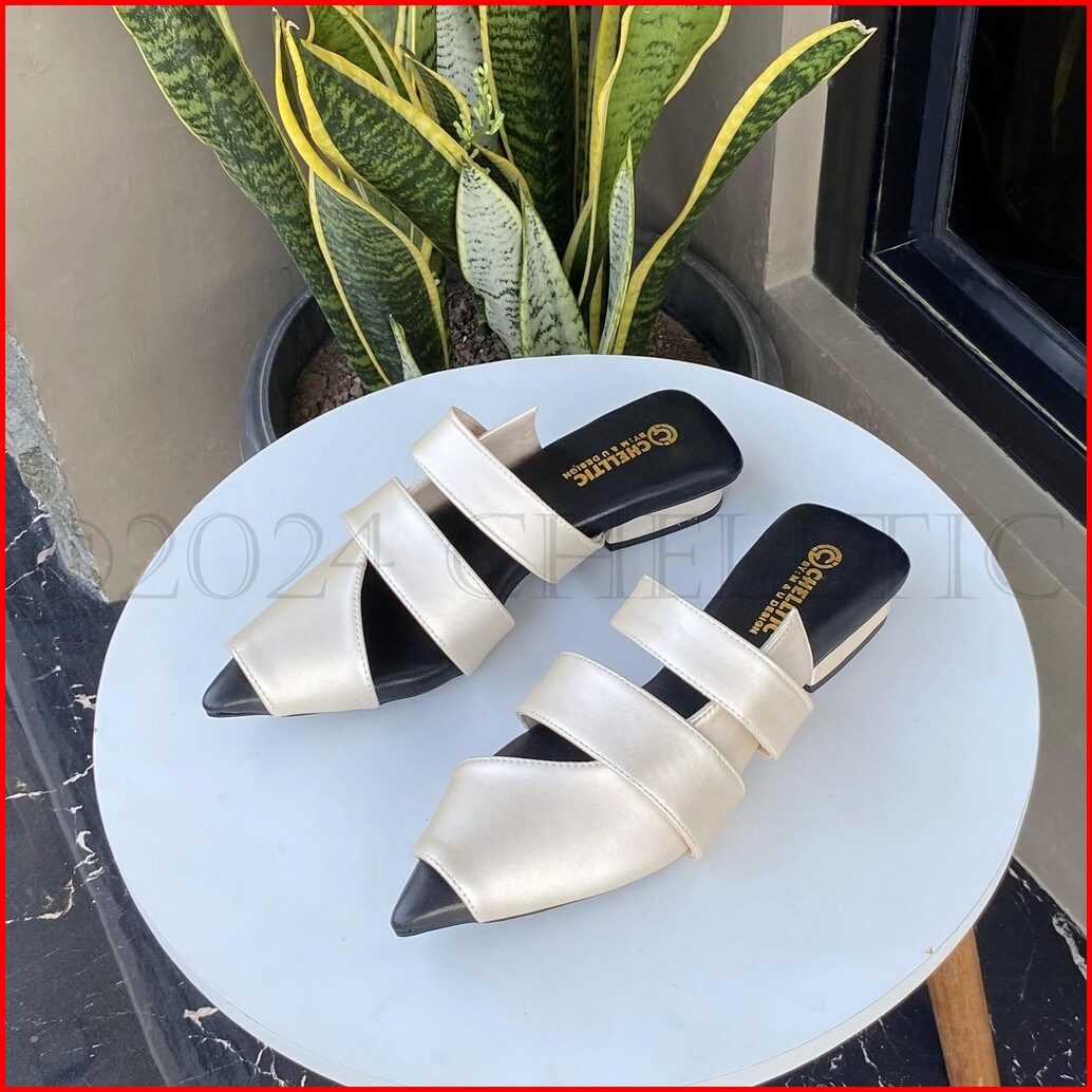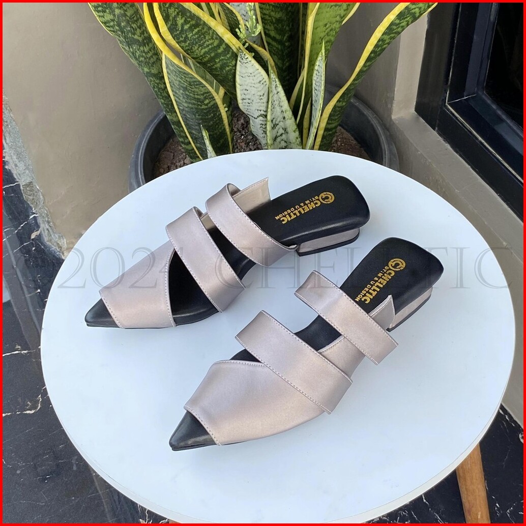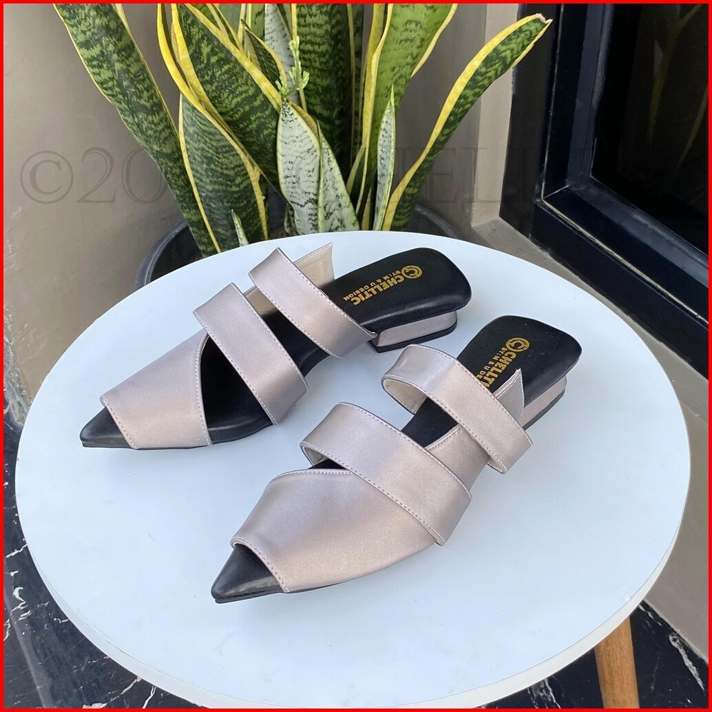 Galaxy - Sandal Wanita Mules Hak Tahu 2cm Terbaru Sepatu Heels Wanita Elegan Party Cewek Korea Sendal Flatshoes Slipon H