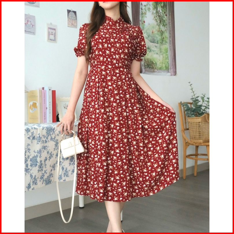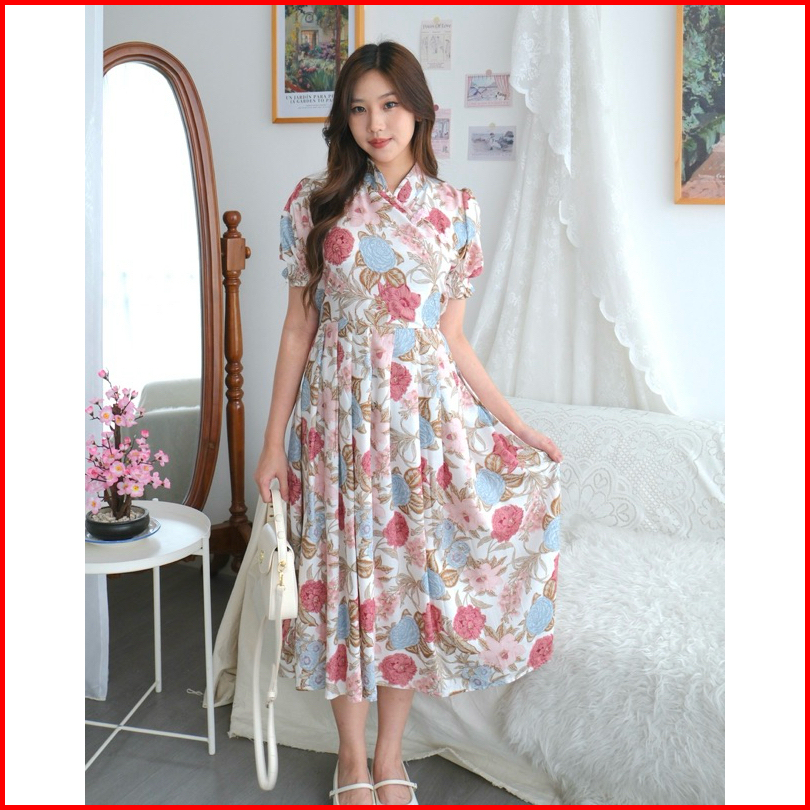 Kanon - Hua Qipao Dress - Dress Imlek Rayon Qipao Modern Midi Motif Bunga