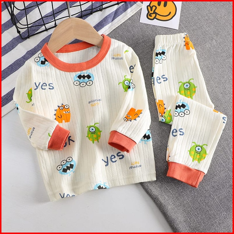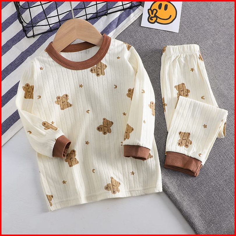 Junecollections Baju Tidur Anak Setelan Piyama Bayi Set Lengan Panjang Bahan Lembut Piyama Teddy Bear Beruang