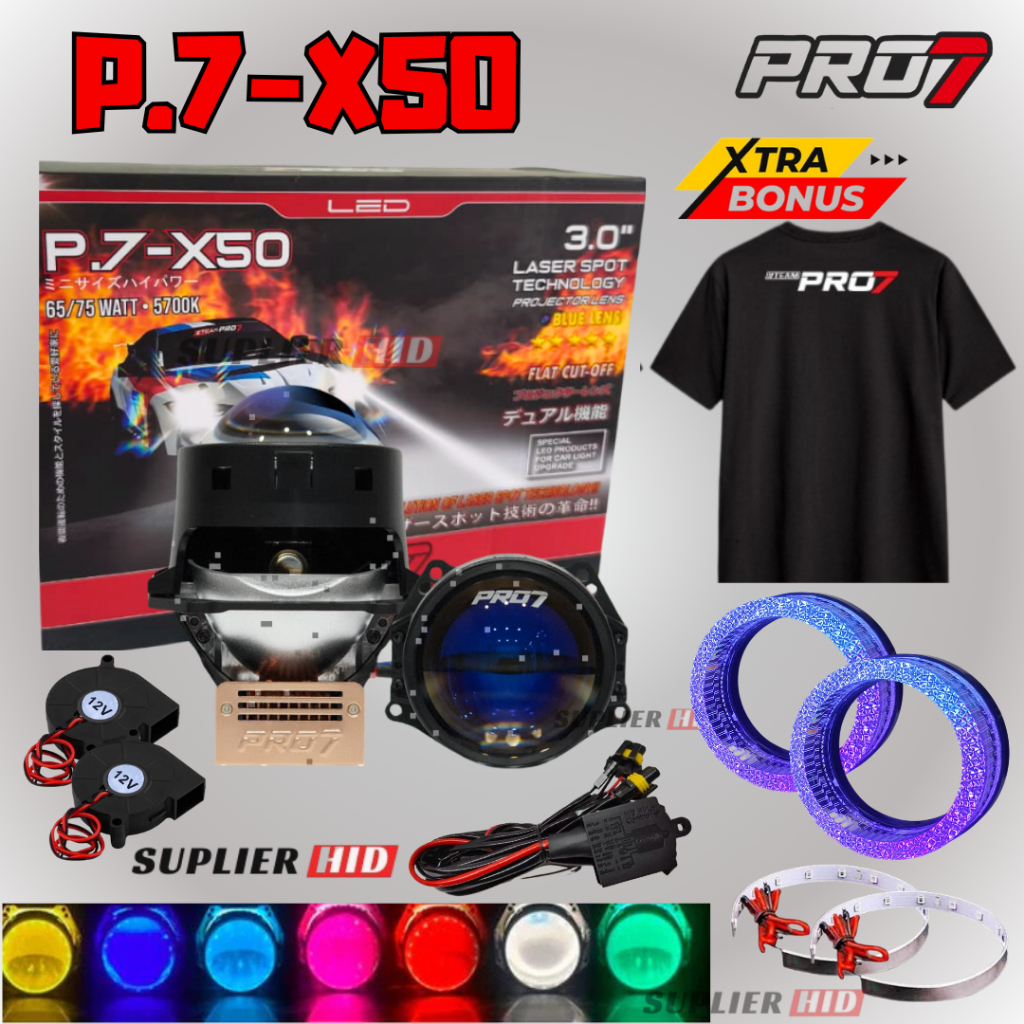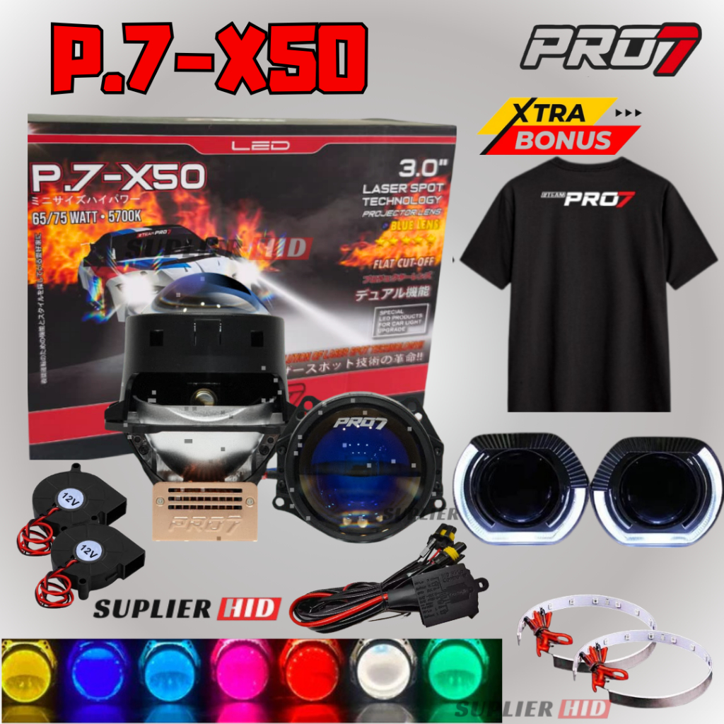 [EXTRA BONUS KAOS] PRO7 P7X50 P.7X50 BILED PROJECTOR LAMPU SOROT 3INCH LMAPU HEADLAM PRO7 COMBO PAKET LENGKAP