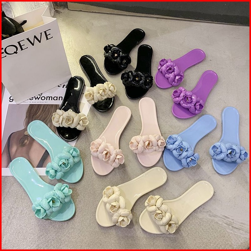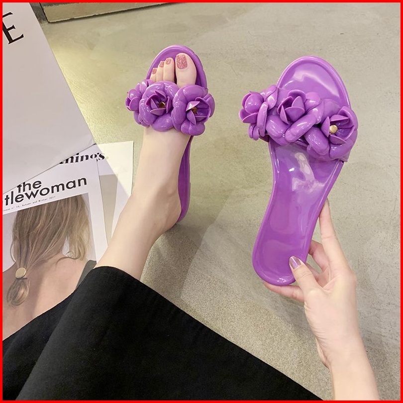 Sandal Jelly Slip Bunga Karet Sintetis Ukuran 35-39
