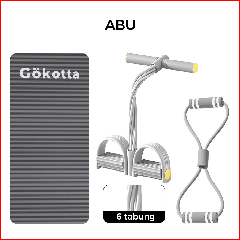 Gokotta Set Fitness 3in1 - Matras Yoga Pink Tebal Resistance Band 8 Pedal Tali Tarik Sit Up Trainer