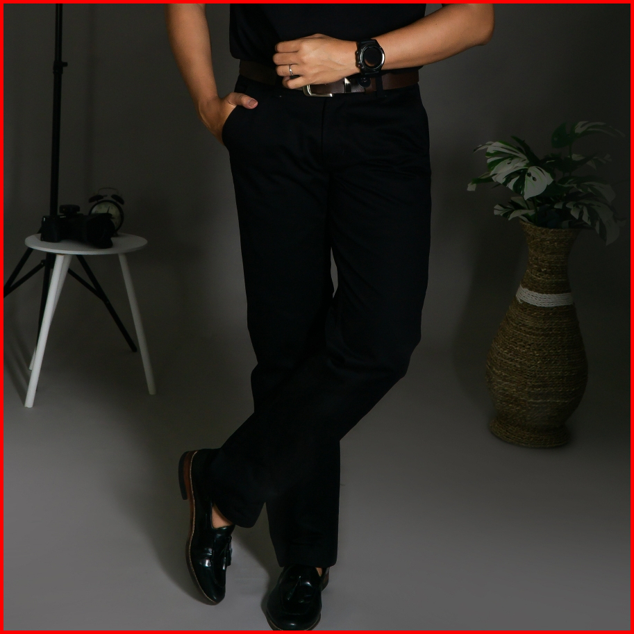 Distin Denim - Celana Chino Selvedge Accent Hitam Celana Panjang Chino Pria Slimfit Reguler Fit