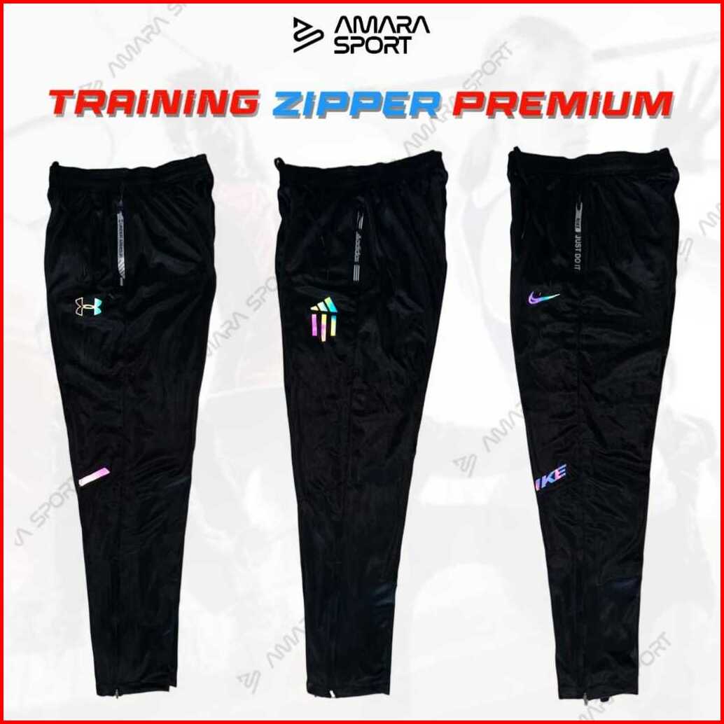 Celana Training Panjang Olah Raga Saku Resleting Waterproof Bahan Bekualitas Pria Wanita Premium