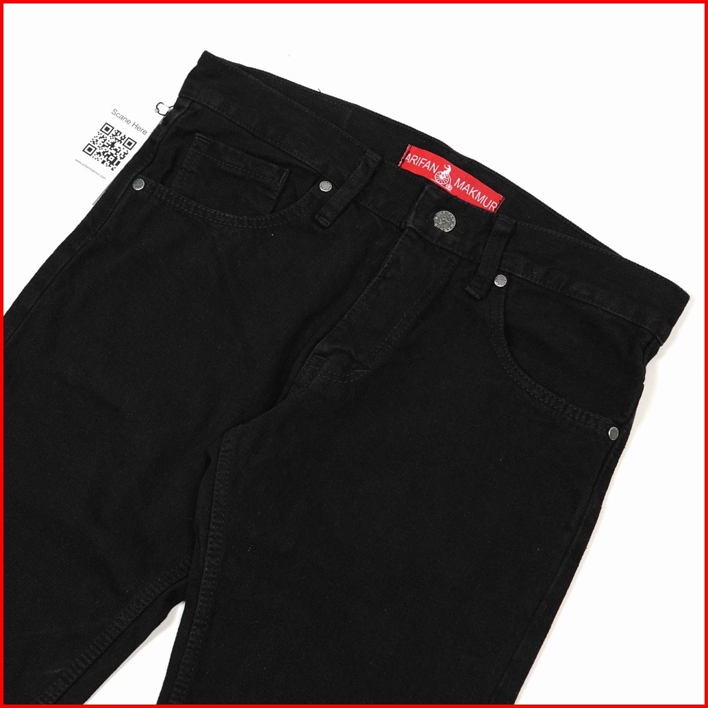 Arifan Celana Jeans Slim Fit Retro Black Hitam Polos