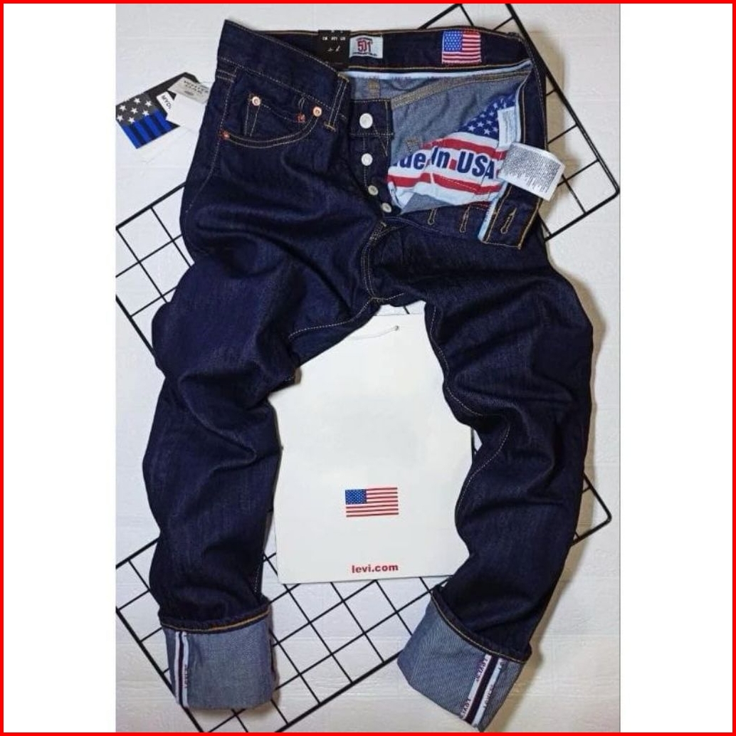 Celana Panjang Jeans Pria 501 Made In Usa Full Tack - Denim Standar Reguler Fit