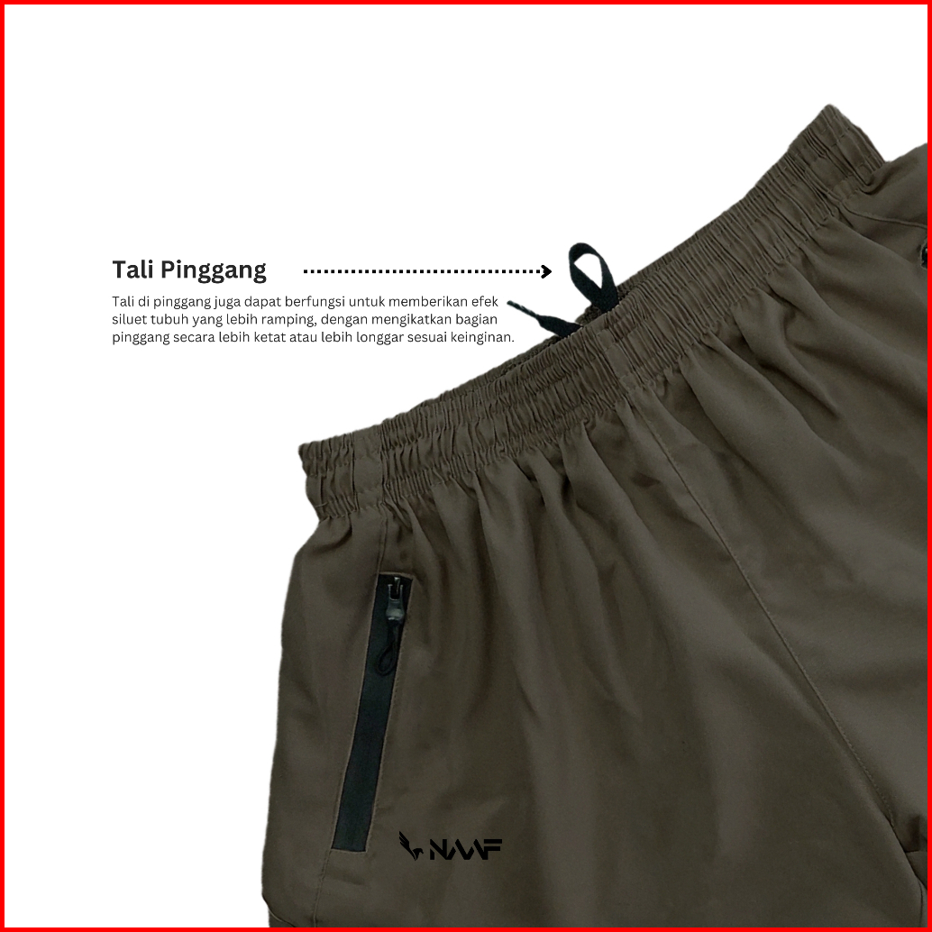 Naaf - Celana Running Legging 2in1 Pendek Olive Pria Wanita Sport Lari Badmintoon Outdoor Micro Parasut Premium