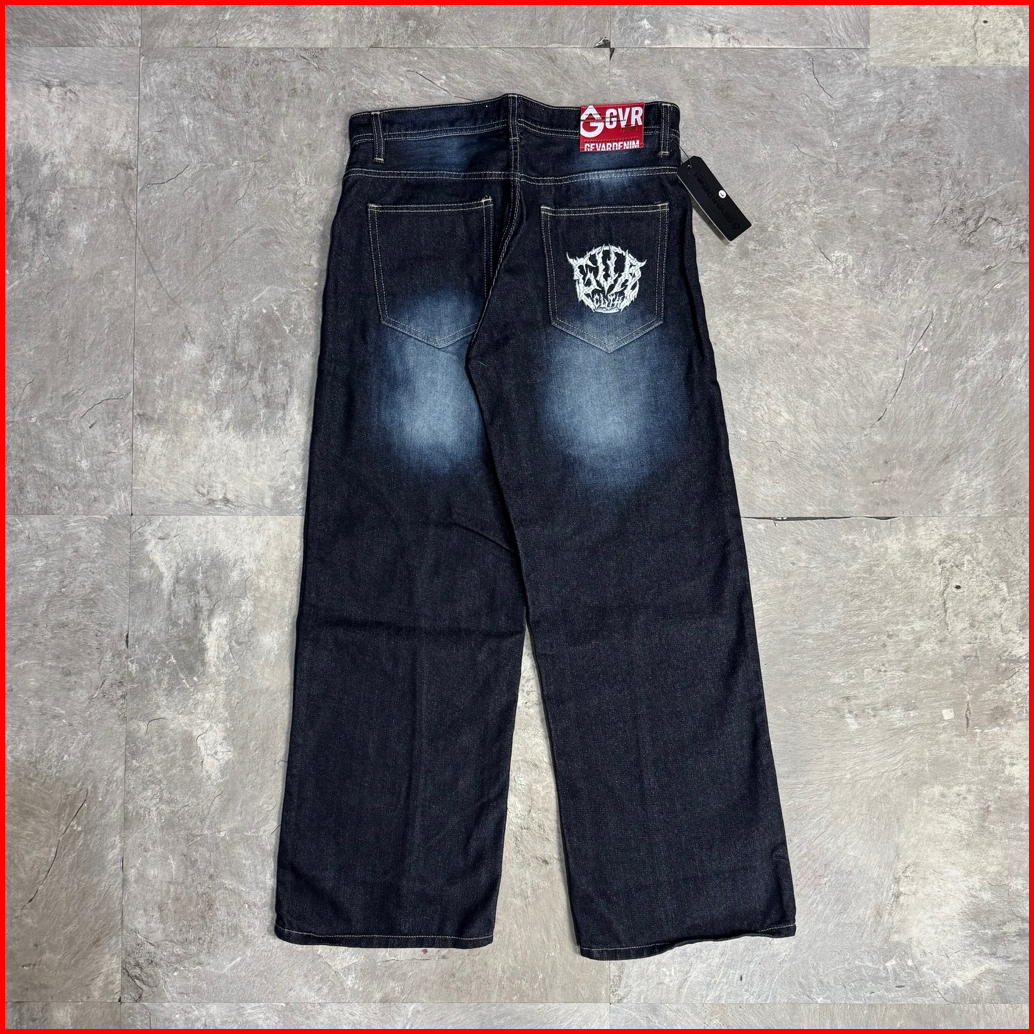 Gevar - Celana Jeans Baggy Blackwash Pecah Pola Oversize Gombrong