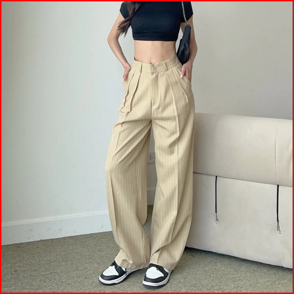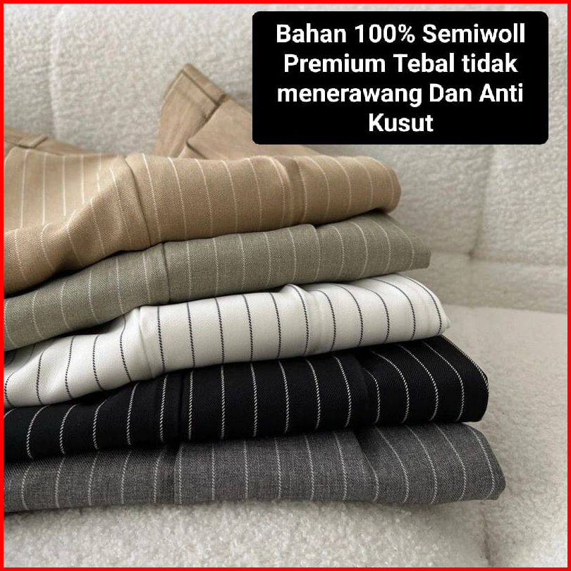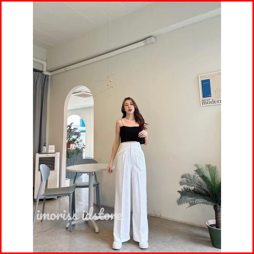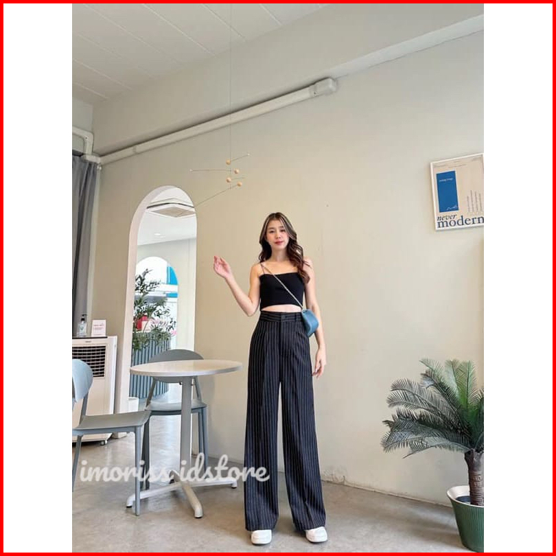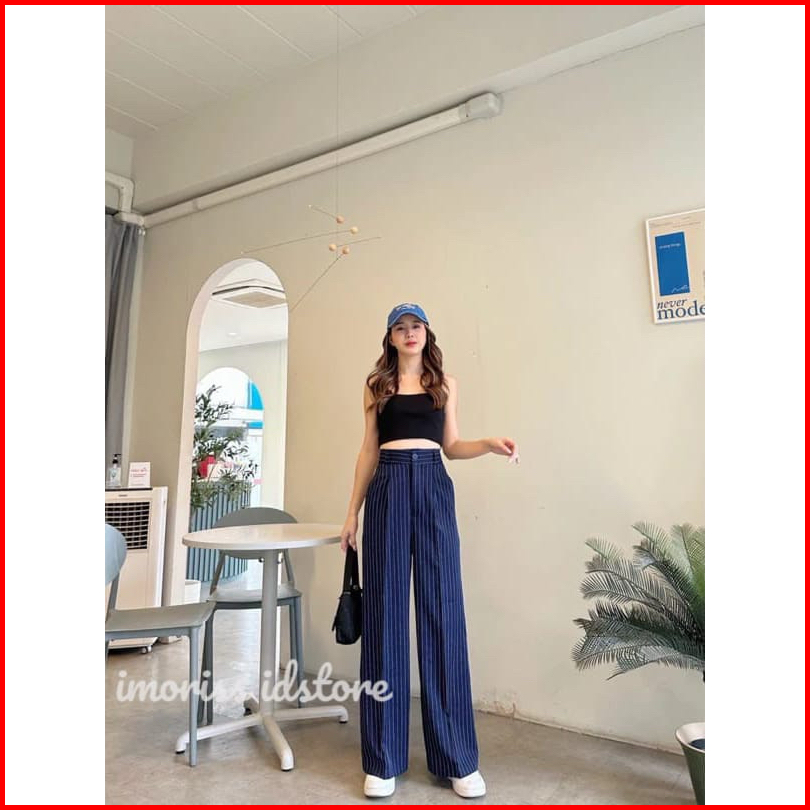 Stripe Pants - Loose Pants Stripe Trousers Wanita - Celana Kulot Wanita Highwaist -celana Panjang Garis Striped Formal C