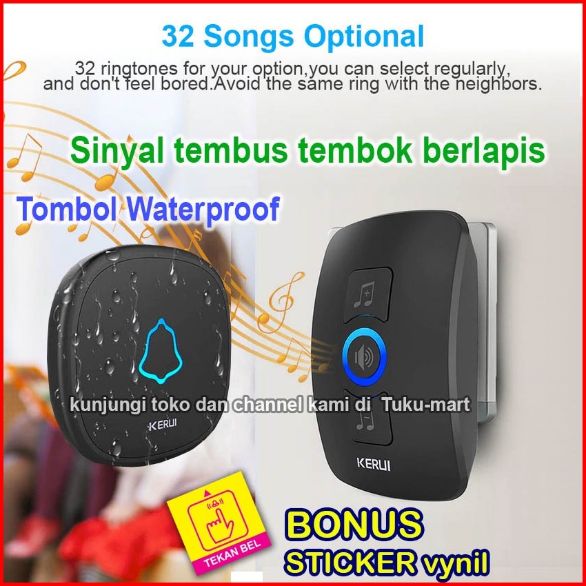 Bel Bell Rumah Pintu Kantor Wireless Tanpa Kabel Door Kerui M525