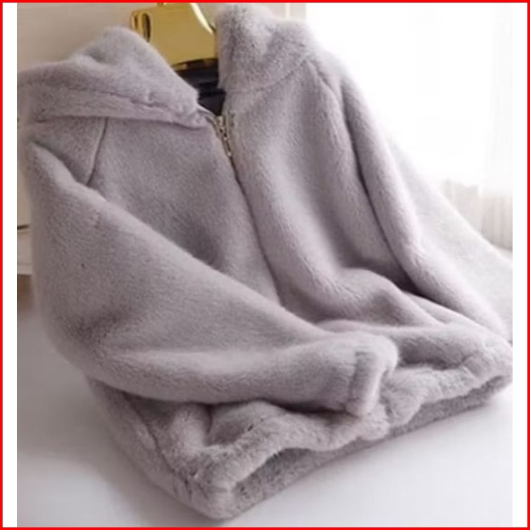 Sweater Jaket Bulu Sherpa Korea Jaket Hoodie Wanita Zipper Polos Kekinian
