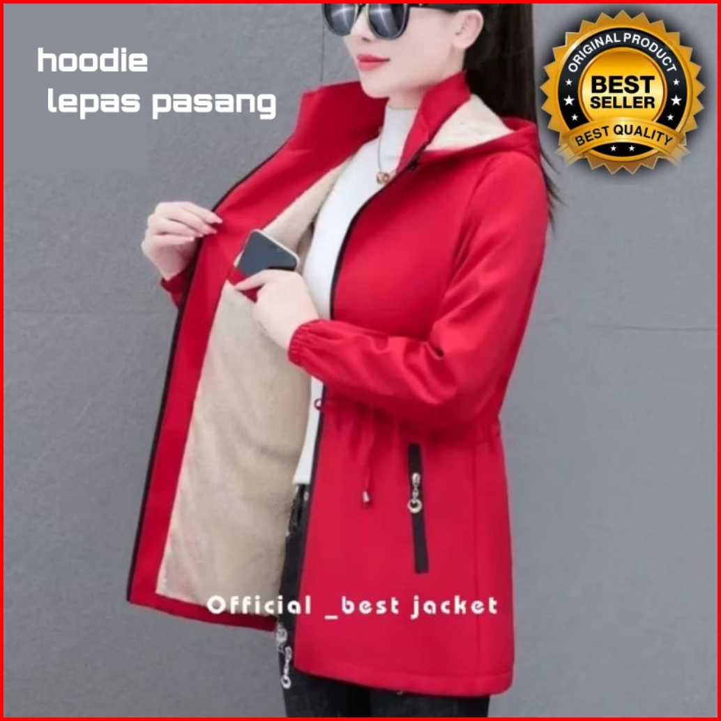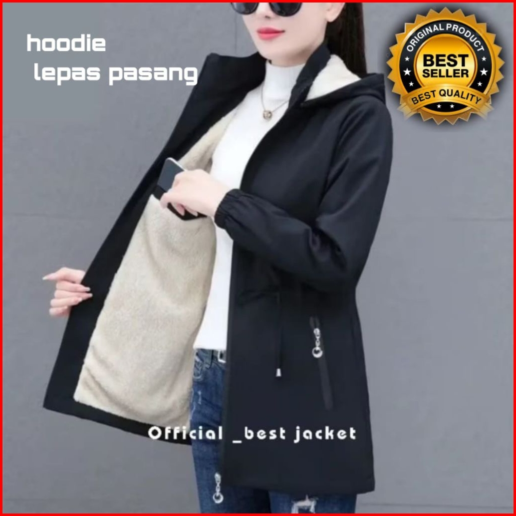 Jaket Mantel Wanita Musim Dingin Jaket Hoodie Berlapis Bulu Hangat Dibadan