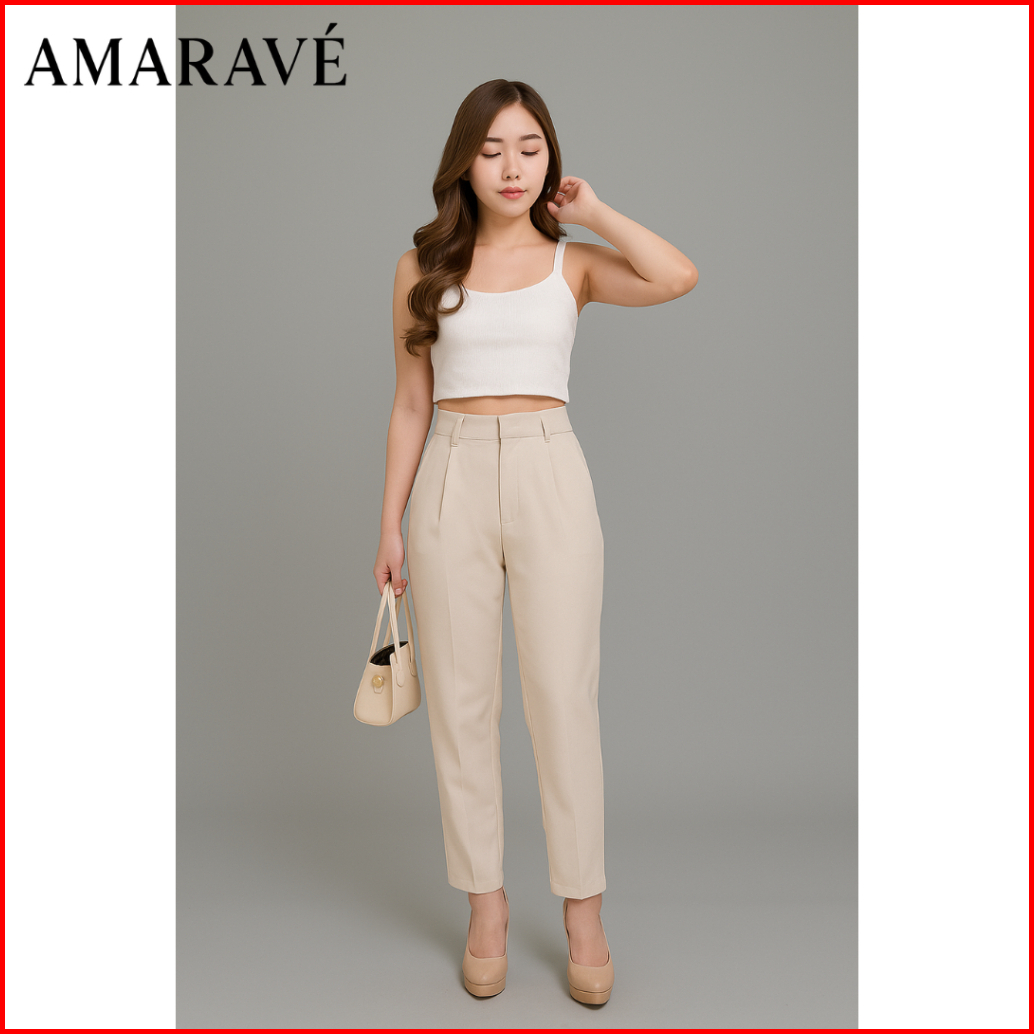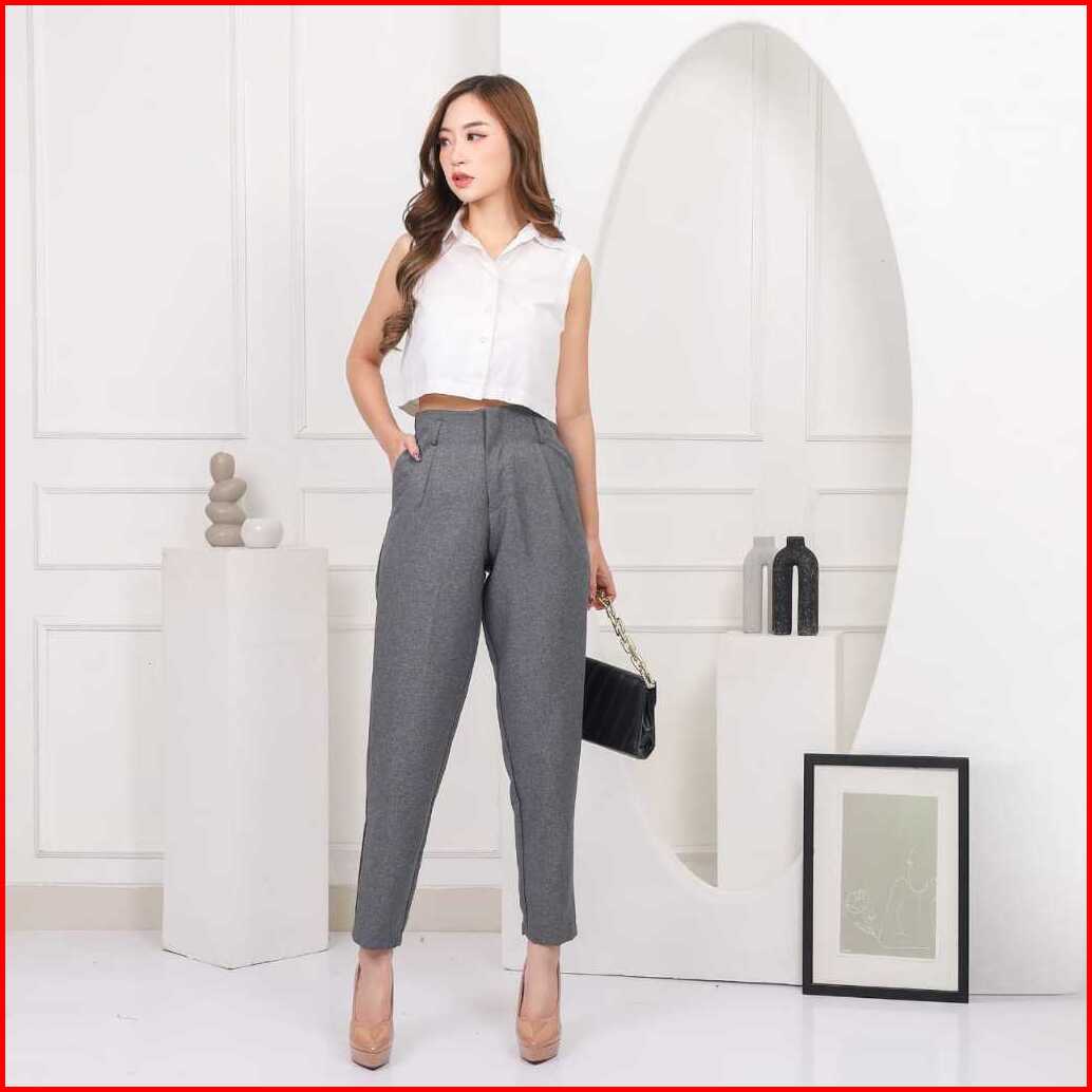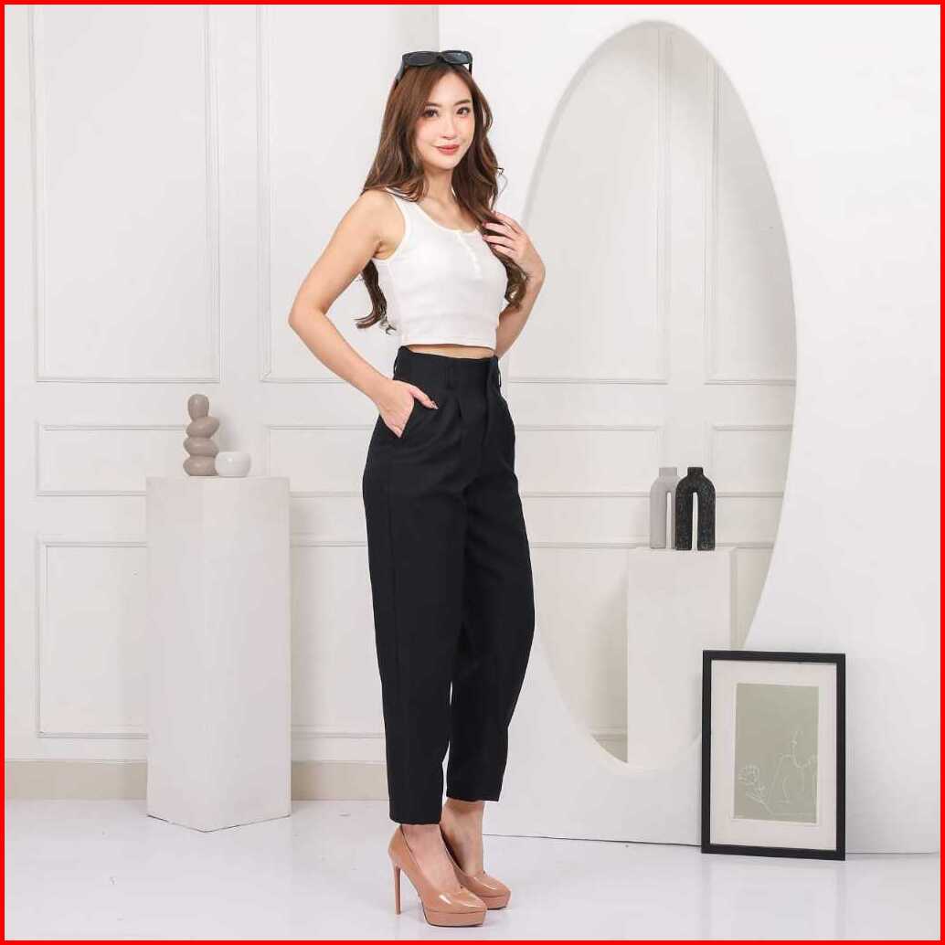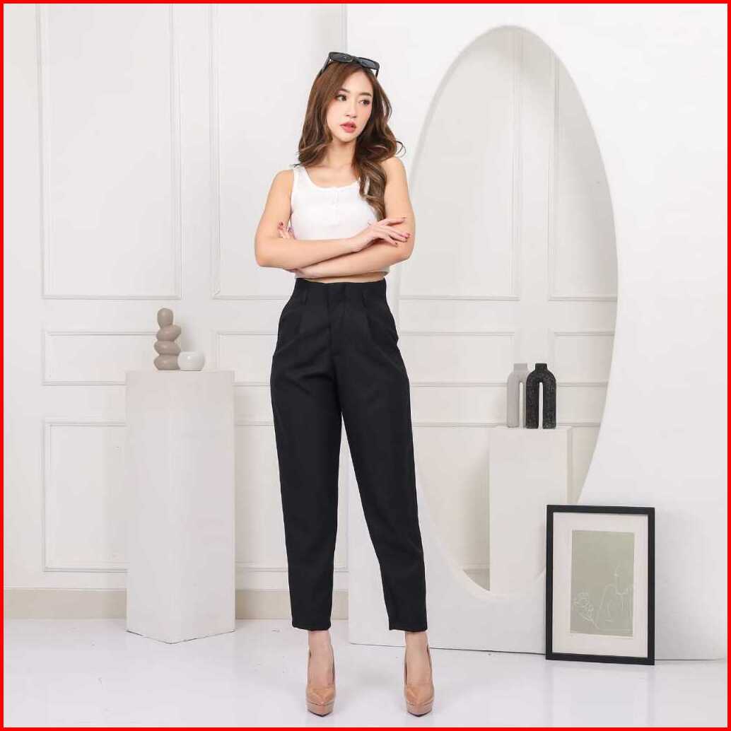 Amarave - Celana Wanita Highwaist Kekinian Baggy Skinny Pants Celana Bahan Kerja Wanita Kantor Korean Style