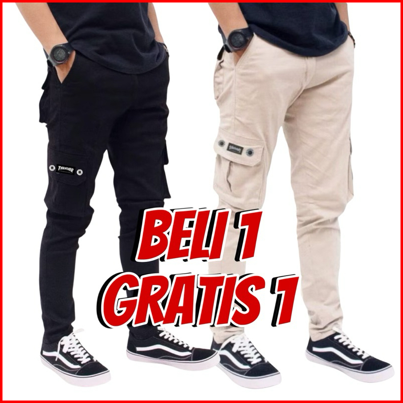 Promo Beli 1 Gratis 1 Celana Cargo Panjang Pria Slimfit Dewasa Tidak Melar Size 28-38 Army Moca Hitam Krem Abu Terlaris