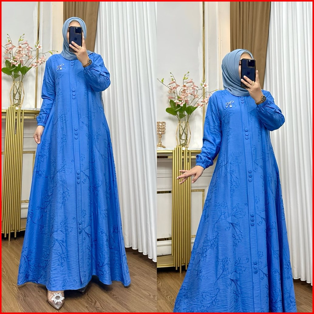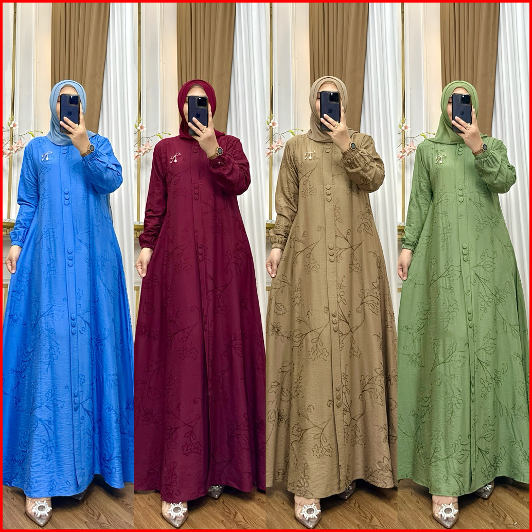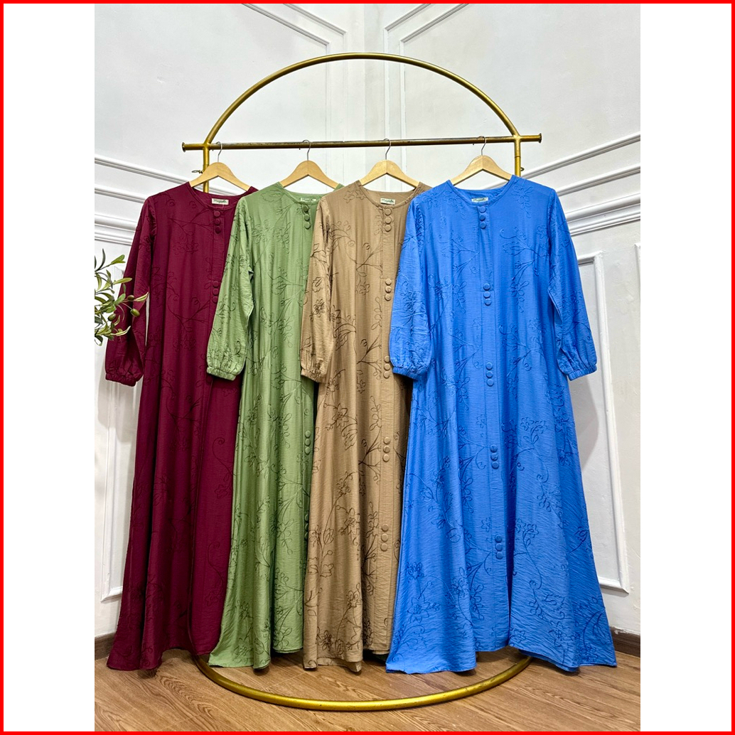 Gamis Polo Linen Wanita Babydoll Asiyah Bordir Bunga Premium Adem Lembut No Hijab